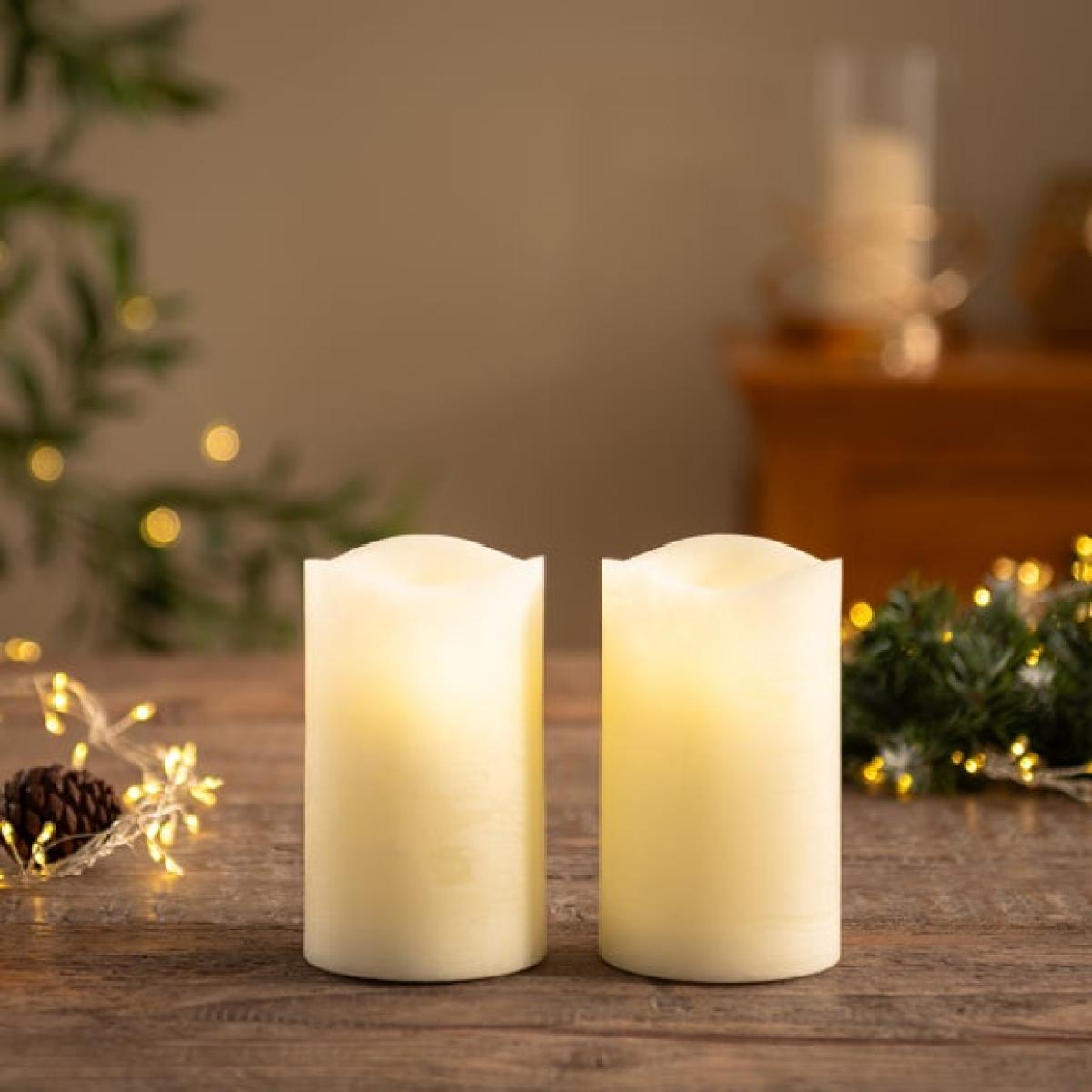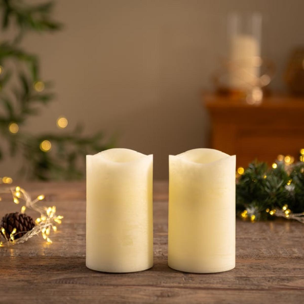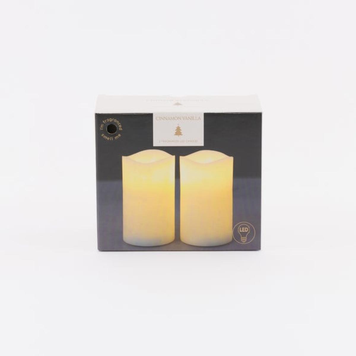 * Set of 2LE. D candles * Flickering flame effect * Rustic real wax finish * Cinnamon vanilla scent * Takes 4 x AA batteries (not included) Set the scene for a cosy Christmas with the Set of 2 Cinnamon Vanilla LED Candles. These flameless candles feature a rustic wax finish and flickering flame effect, offering the charm of real candlelight without the fuss. Infused with a warm cinnamon vanilla fragrance, they bring a festive scent to any room. The natural colourway complements all décor styles, making them a versatile seasonal addition. Requires 4 x AA batteries (not included). A safe and stylish way to enjoy the glow of the season.
