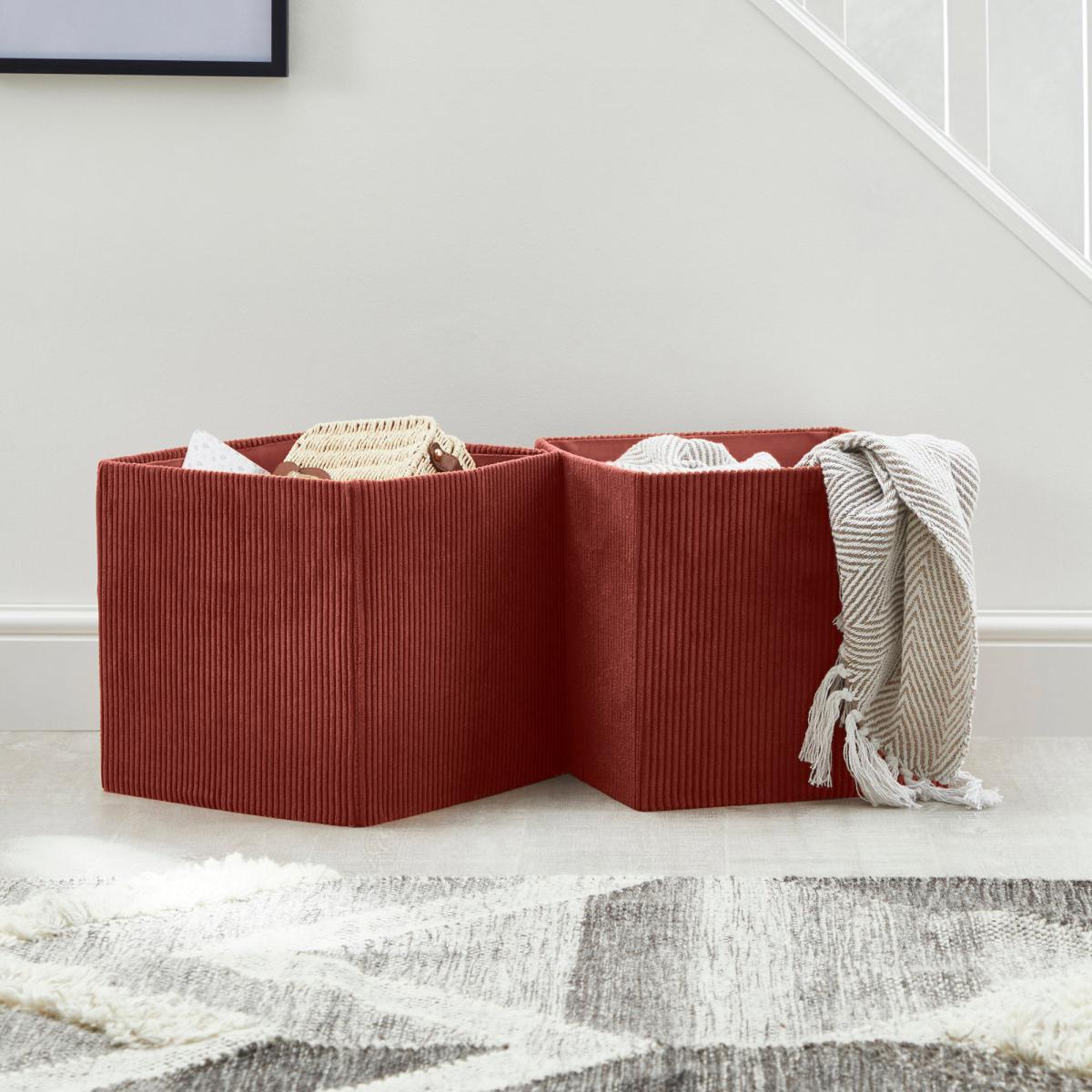 These two large size storage cubes are perfect for storing sundries, clothing and other essentials and can easily be folded away into flat-pack when not in use. Modern corduroy is a sophisticated way to enhance your ordinary storage cube. These cubes will bring style to your space while providing ample room for storage.