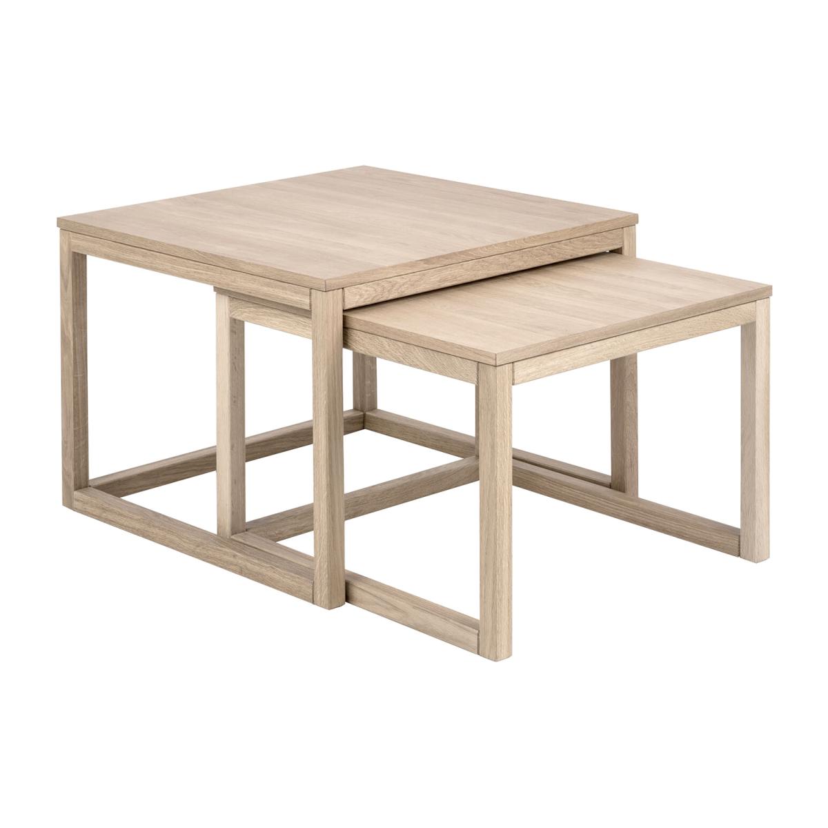 Elevate your living space with this Set of 2 Cornus Coffee Tables. Featuring a pigmented oiled white oak veneer top and a sturdy base, it offers a sophisticated design that complements any room. The harmonious pairing of the two tables provides versatile functionality and timeless style.