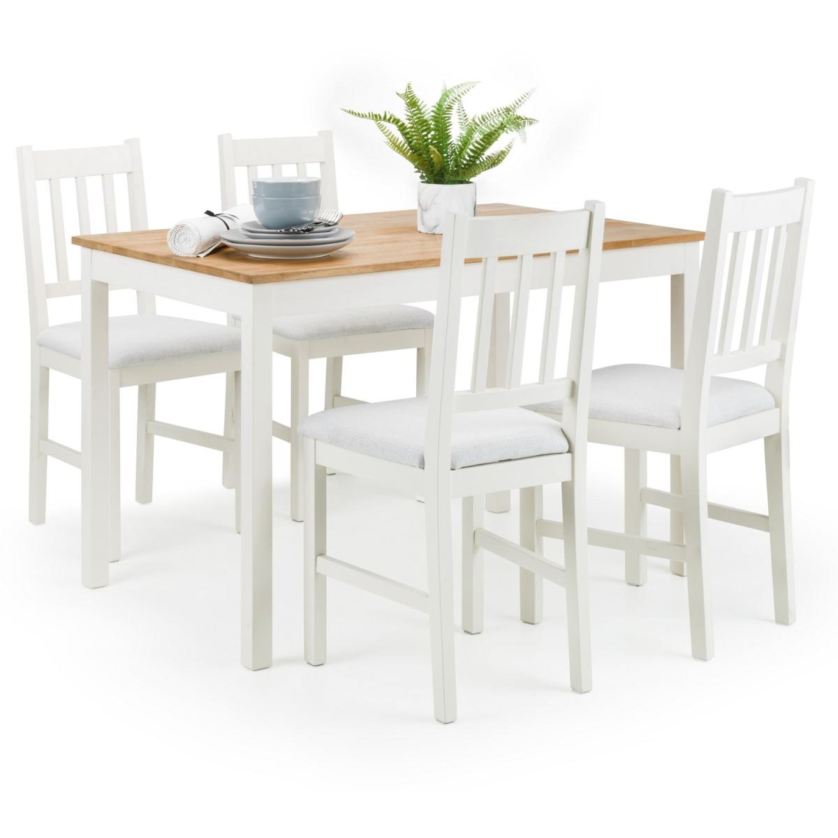 Coxmoor chairs, crafted from solid oak, with a durable lacquered finish and grey linen seats, matching almost any dcor. This classic, timeless design adds extra comfort for you to enjoy your daily meals.