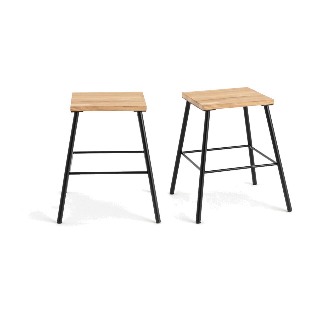 The set of 2 Crueso stools. Contemporary in style, they combine wood and metal to great effect. They'll fit with most interior styles. Made in Europe.