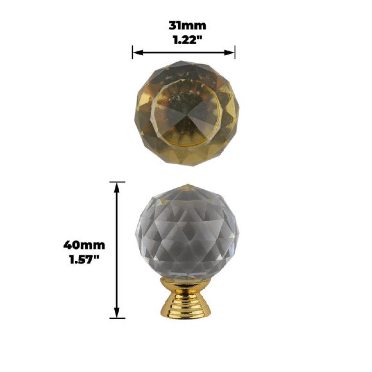Set of 2 Crystal Ball Glass Cupboard Door Knobs