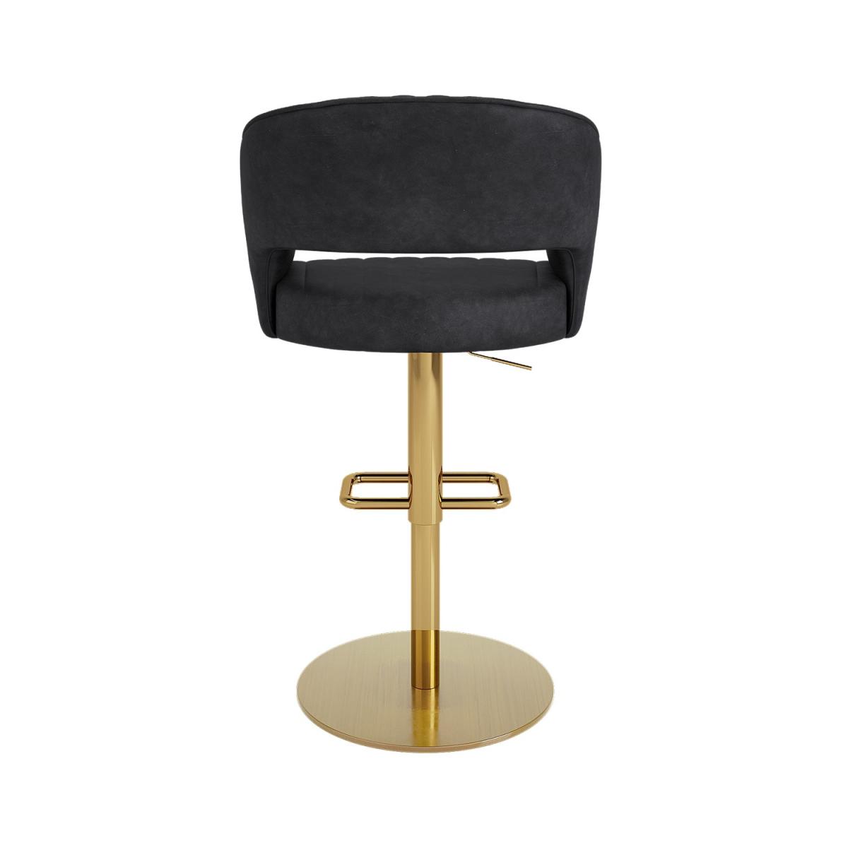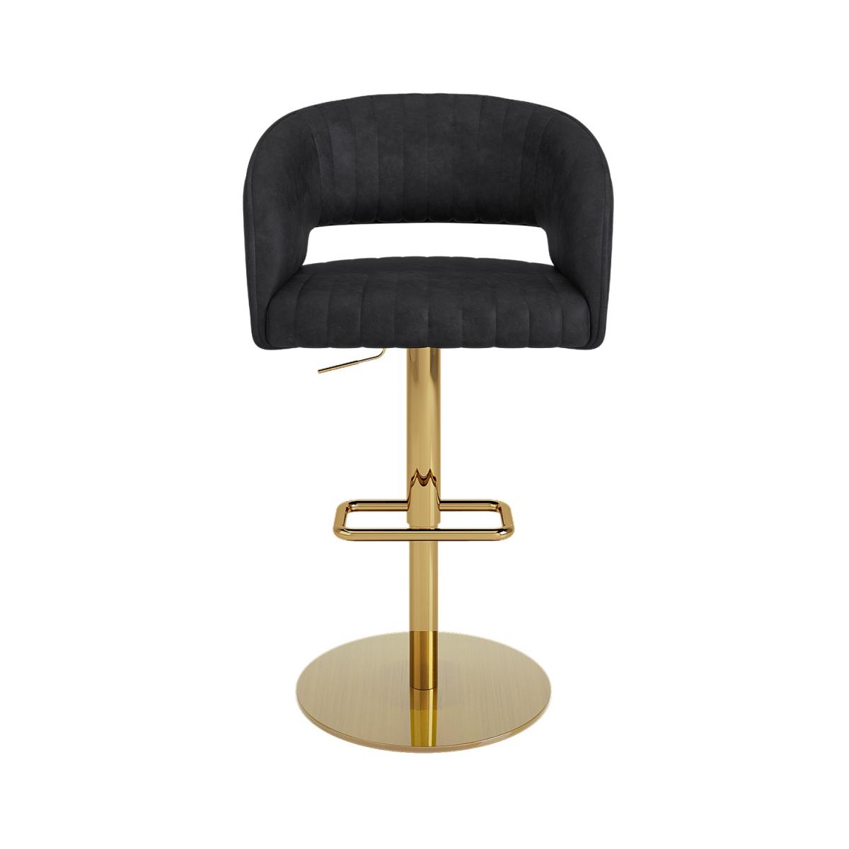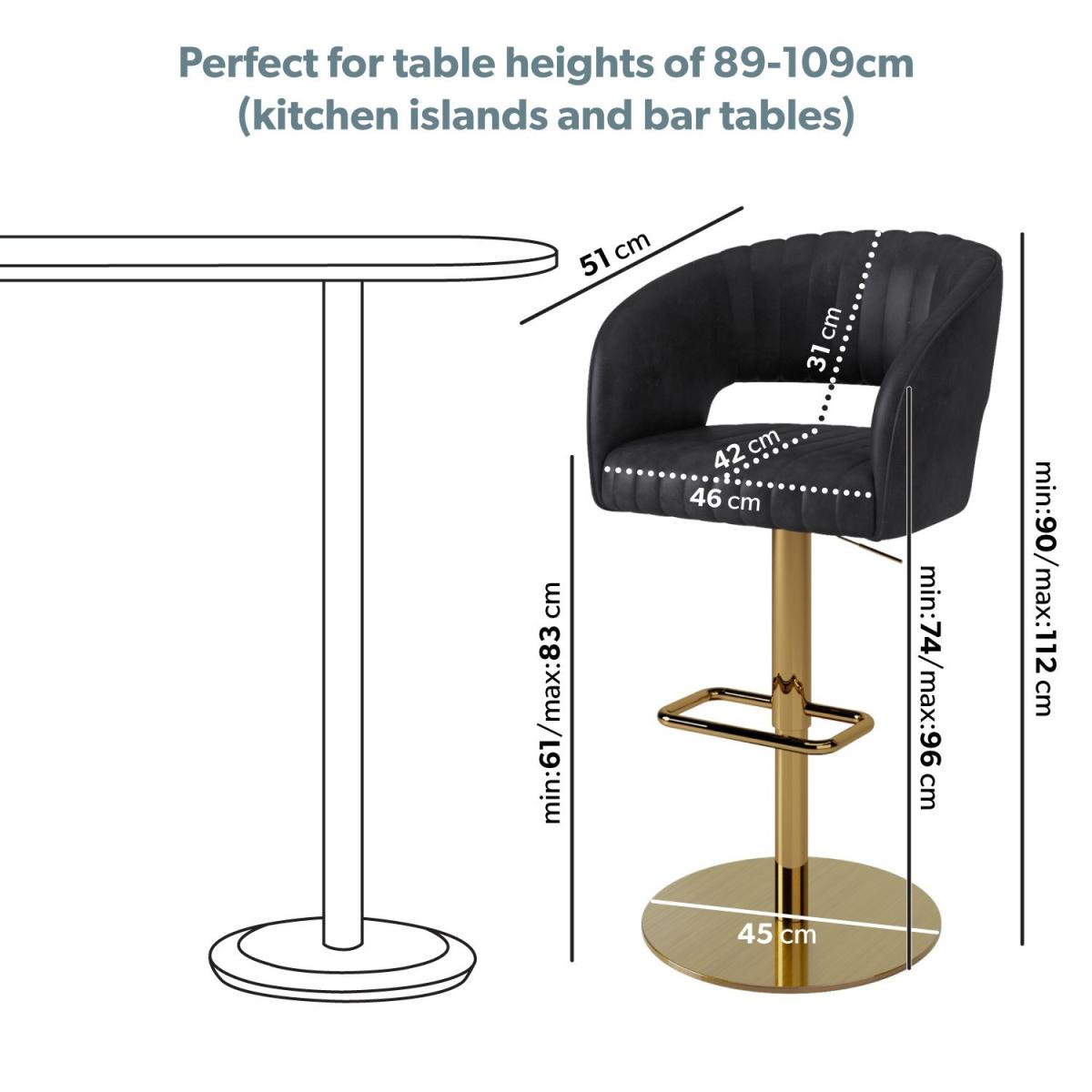 This black PU bar stool features a stunning brushed brass footrest and base is modern and on trend. The footrest is a great addition to this stool as it provides added comfort. Designed to be comfier for longer, the seat is foam filled, perfect for perching while you eat, drink or work. The vertical stitching detail, luxury black faux leather and brass finish add the perfect modern touch to your space.