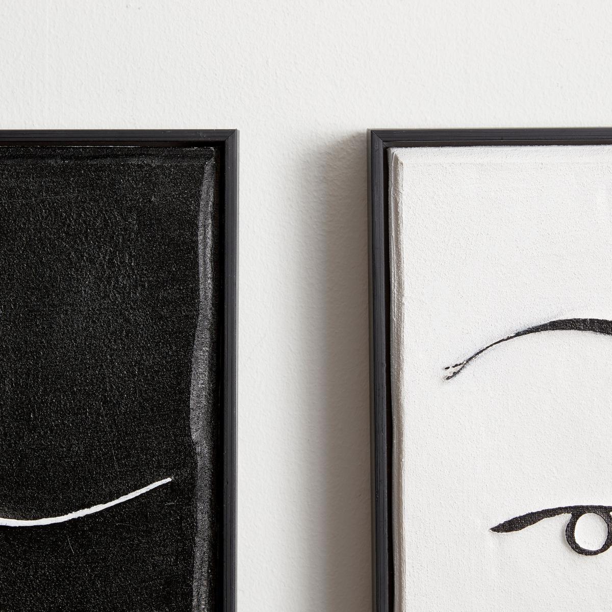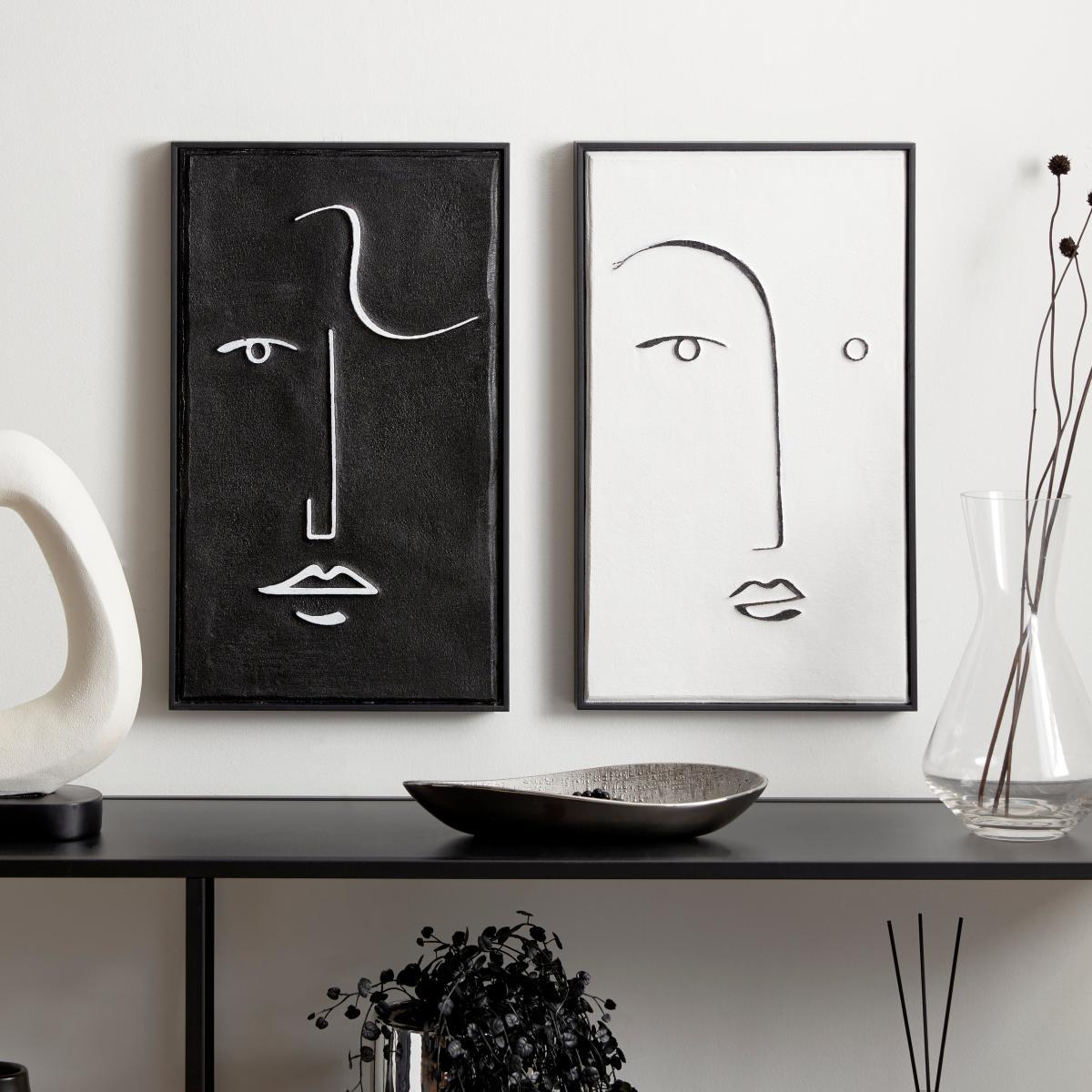 A contemporary set of 2 monochrome art pieces, the Curves Faces Framed Art features stunning hand painted faces in a contrasting monochrome finish, complete with a black frame to make these design stand out. The Set of 2 Curves Faces is the perfect art piece for a modern and contemporary interior space.