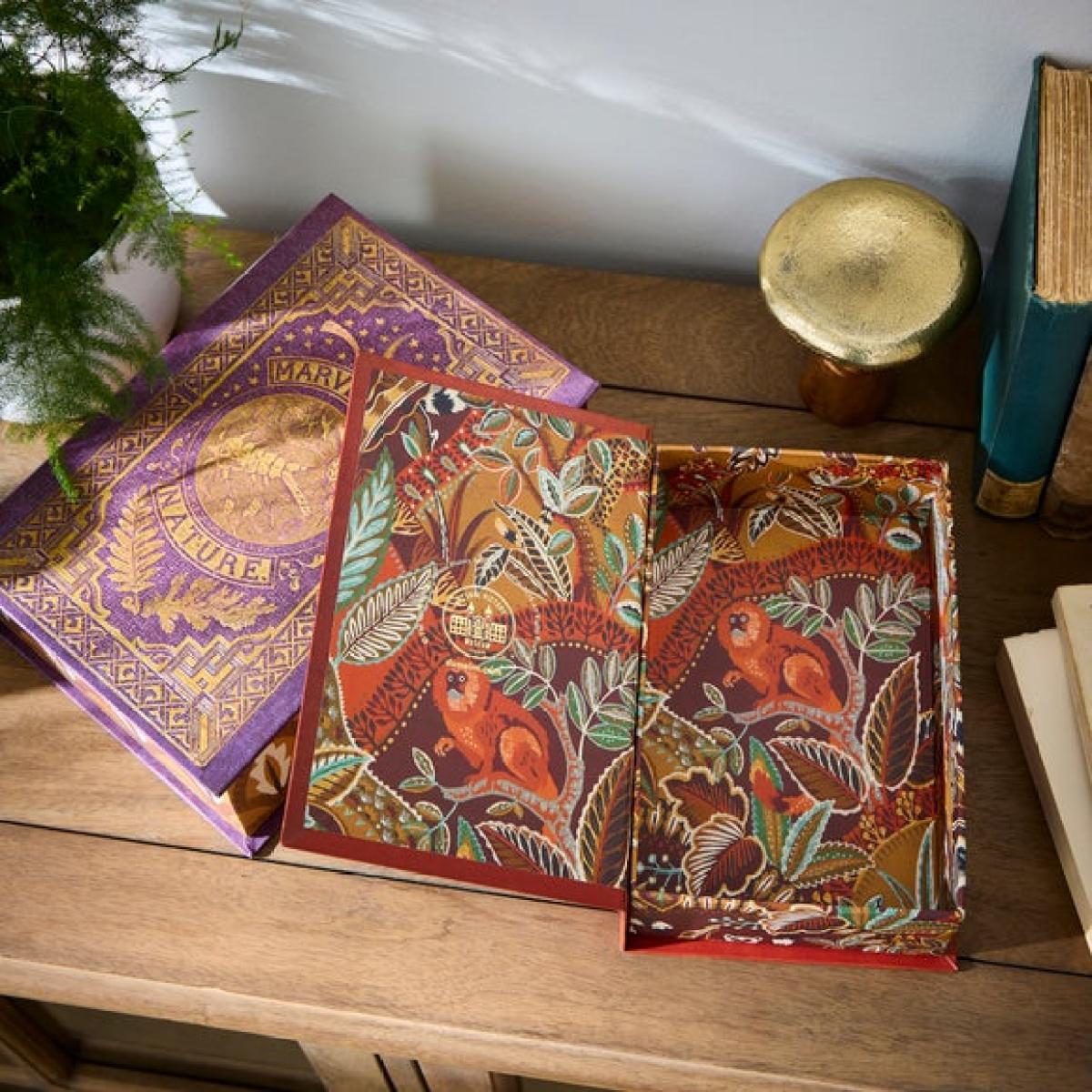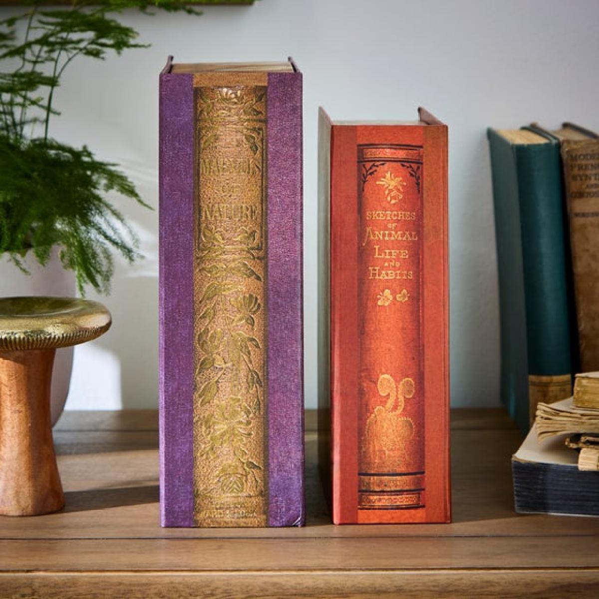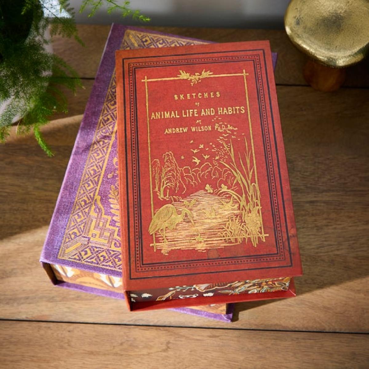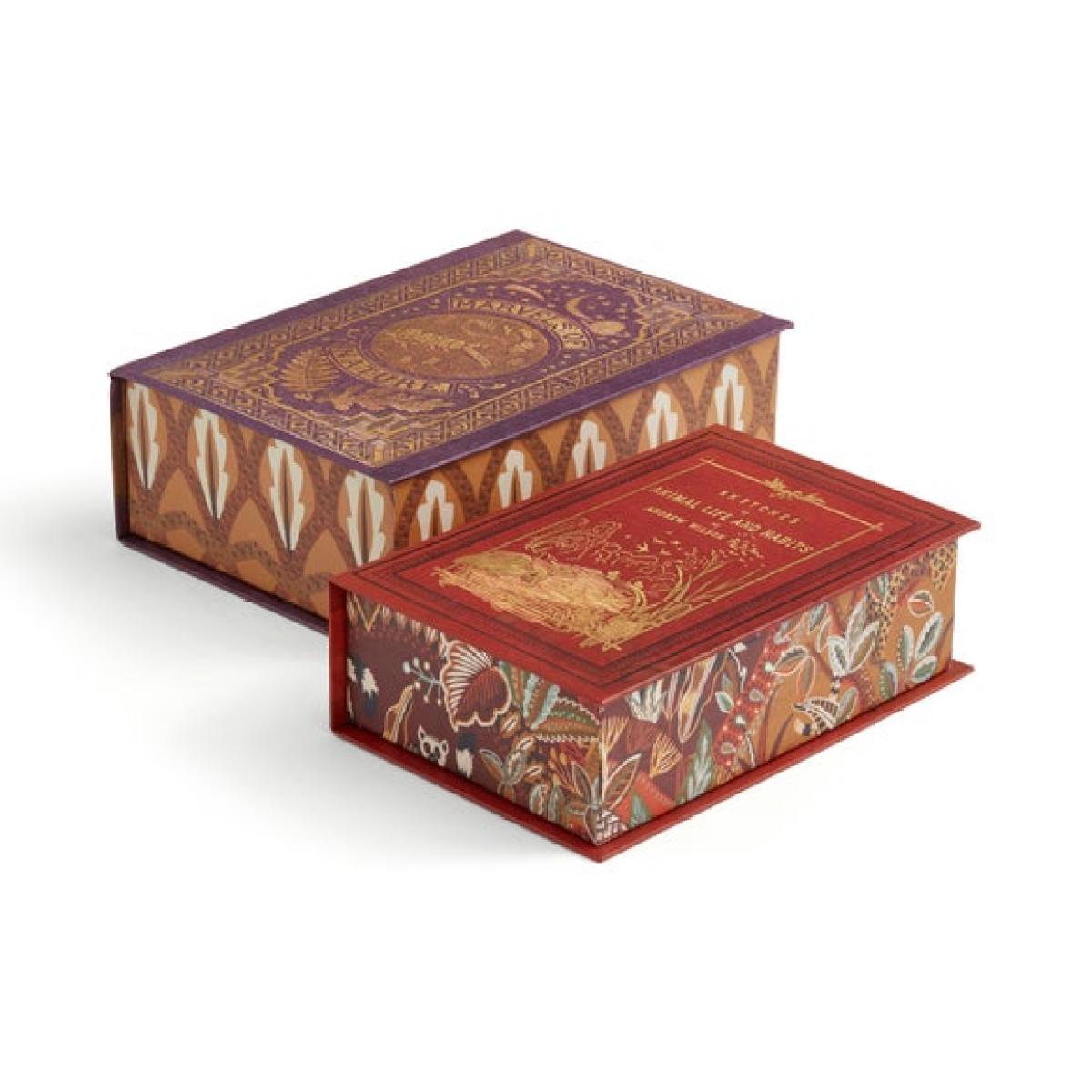 **In collaboration with the Natural History Museum** * Set of 2 boxes * Classic book style * Great decorative storage Storage does not need to be boring with this Set of 2 Decorative Classics style storage boxes. Adorned with multicoloured book cover designs, these boxes will slip beautifully into your bookshelf or mantel and will store all those smaller bits and bobs safely away. The intricately detailed and colourful classic style covers feature the fictional titles, ‘Sketches of Animal Life and Habits’ and ‘Marvels of Nature’ - a lovely nod to nature enthusiasts’ preferred reading materials.**Natural History Museum x Dunelm**From spots and stripes to speckled patterns and maze-like designs, extraordinary markings can be found in abundance throughout the natural world. Animals adorn themselves with unique patterning for a variety of reasons – to blend into their environment to avoid predation, to send a warning signal, to attract mates and even to regulate their temperature. This collection celebrates just a select few of the many beautiful patterns that can be found in nature from the striking markings of the jaguar to the brilliantly vivid colours of a poison dart frog. With many of the species featured within this collection at risk or endangered, we want to shine a light on these incredible animals and raise awareness of threats to the security of their future. © The Trustees of the Natural History Museum, London 2025. All Rights Reserved.