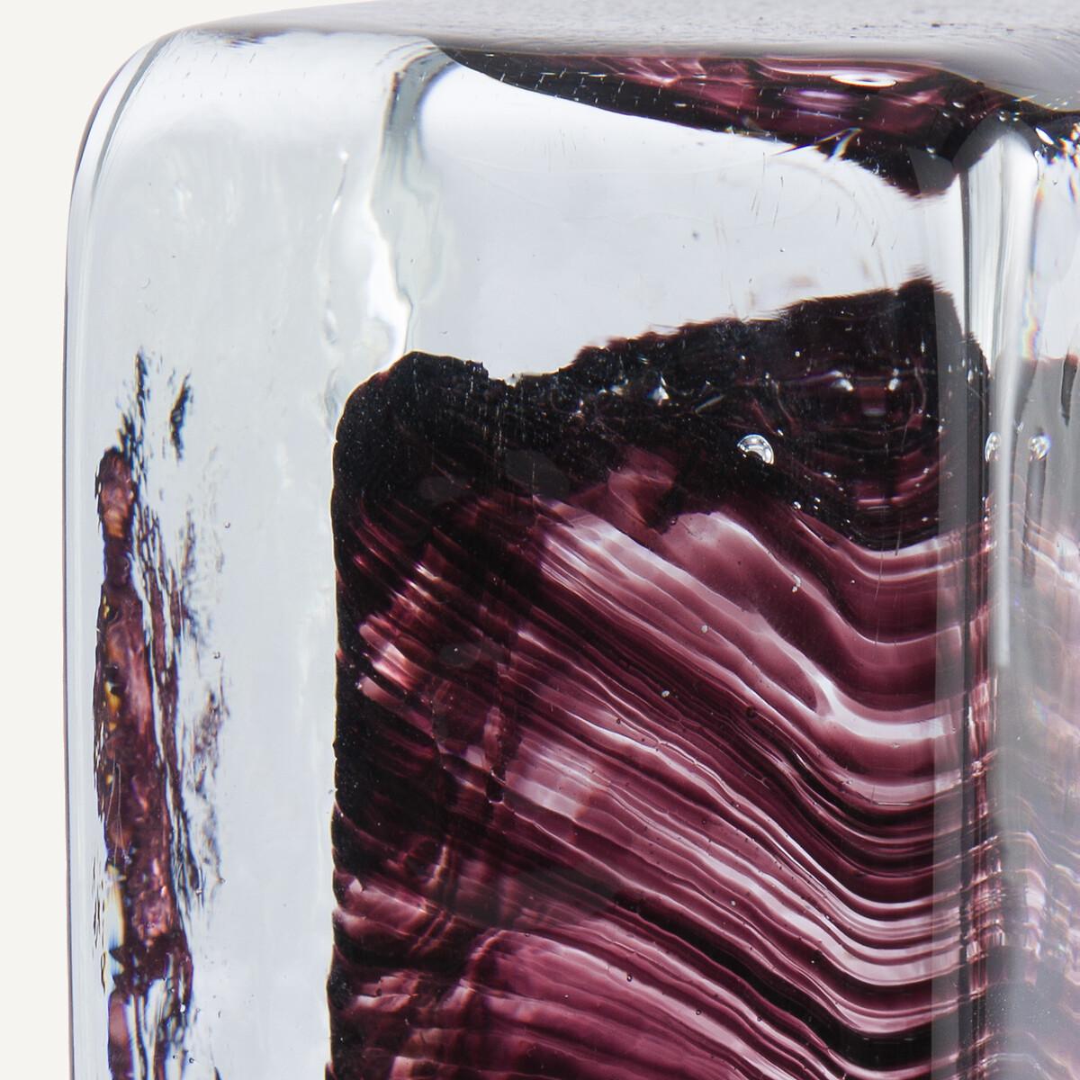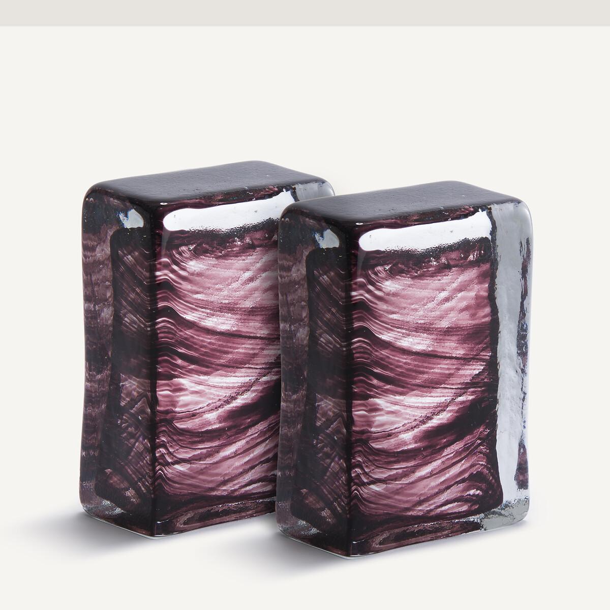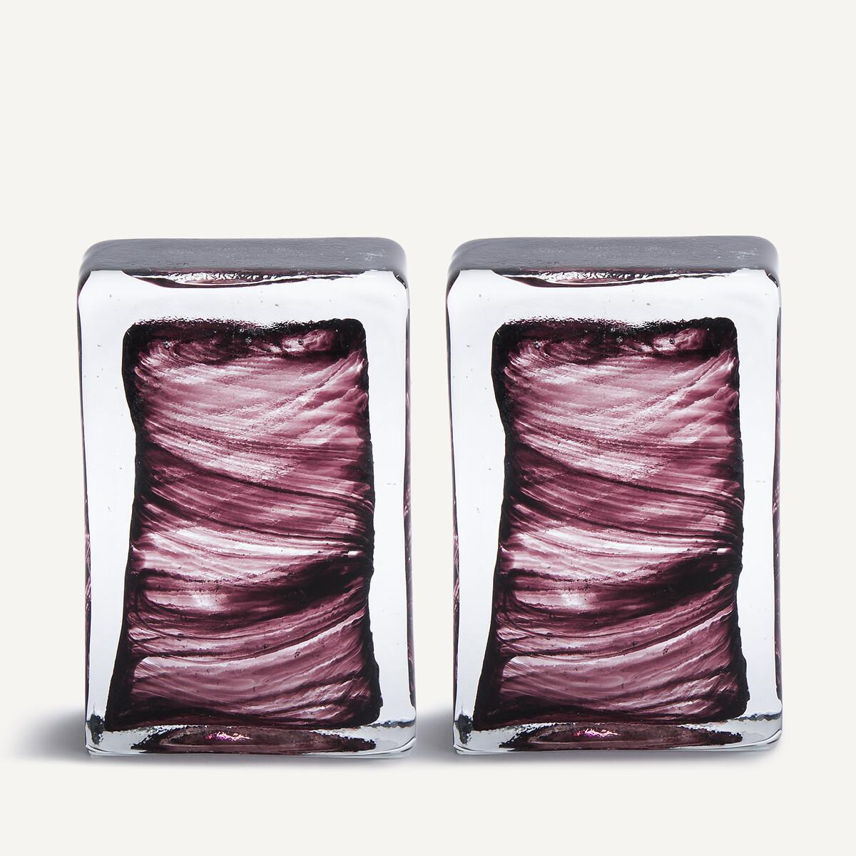 These blown book ends have a simple geometric shape with rounded corners. Their transparency and delicate details capture the light, creating an elegant, timeless effect that is characteristic of artisanal glasswork. Product Details • Thick hand-blown glass. Hand-crafted, each piece is unique. Shapes, colours and dimensions may vary slightly from product to product. • Sold in packs of 2. Dimensions • Width: 10cm/4" • Height: 15cm • Depth: 6cm/2.5"Dimensions and weight of parcel • 1 parcel • W27 x H24 x D18cm. 5kg