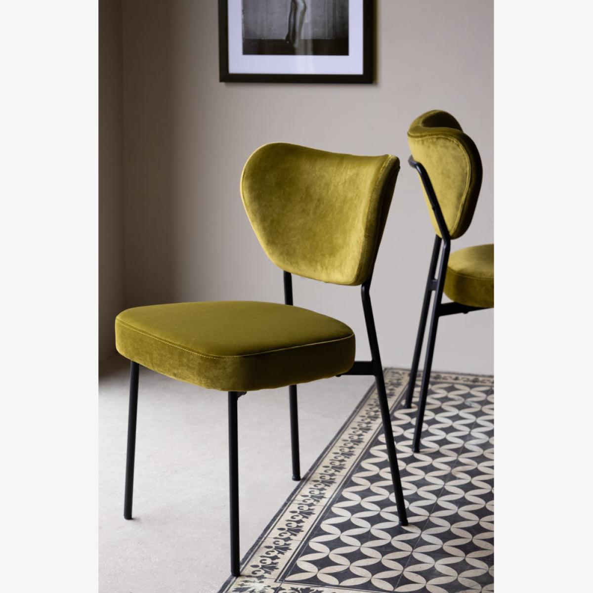 Bring elegance and comfort to your dining space with this Set of 2 Dining Chairs in Needlecord Velvet Green. Upholstered in lush green needlecord velvet, these chairs add a rich, vintage feel to any room. With a beautifully curved back and a sturdy black metal frame, they're designed to offer outstanding comfort and support through every meal. Plus, they come fully assembled with built-in floor protectors, so they're ready to go right out of the box; no hassle, just chic seating that arrives at your doorstep in just 7 days. A stylish addition to both modern and traditional interiors, these chairs blend luxurious texture with practical design for dining in style. - Set Of 2 Dining Chairs In Vintage Green - Measures: H84cm x W48cm x D56cm - Dining chair fabric: Needlecord velvet - Arrives fully assembled - Available in 7 days