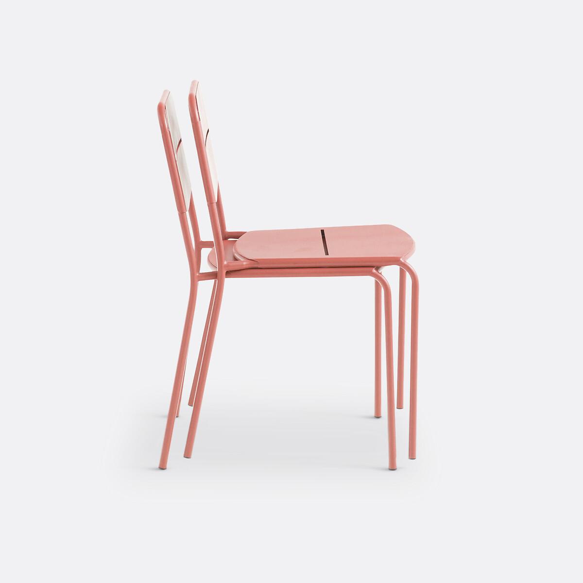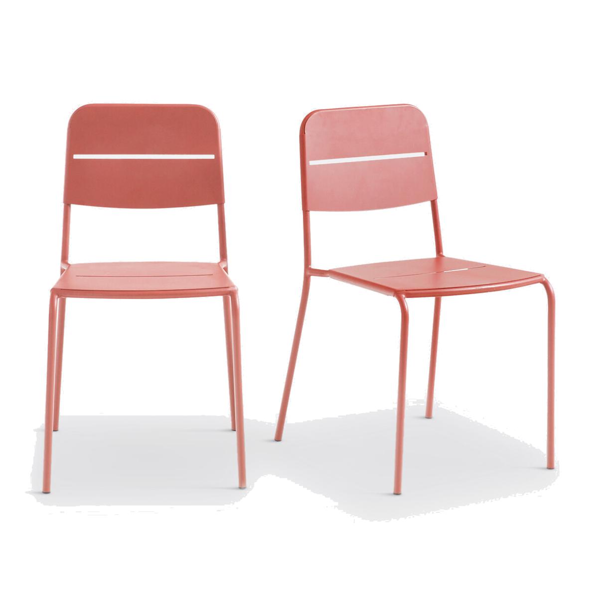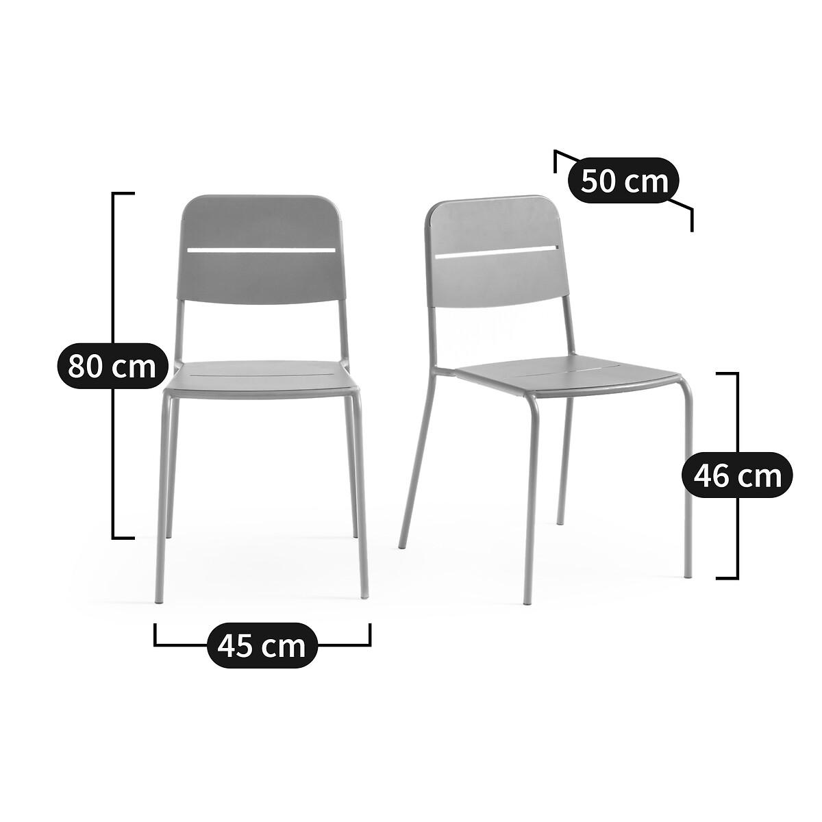The colour invites itself into the garden! Light and easy to store, Duune chairs adapt to all spaces: terrace, balcony, garden... Make outside a welcoming space. Product Details • Made from tinted galvanized steel, epoxy finish • Stackable • PVC pads under the feet. Dimensions • Width: 45cm • Height: 80cm • Depth: 50cm • Seat: L40 x H46 x D45cm • Weight: 5.6 kg each. Dimensions and weight of parcel1 parcel • L63 x H97 x D51cm. 17kg.