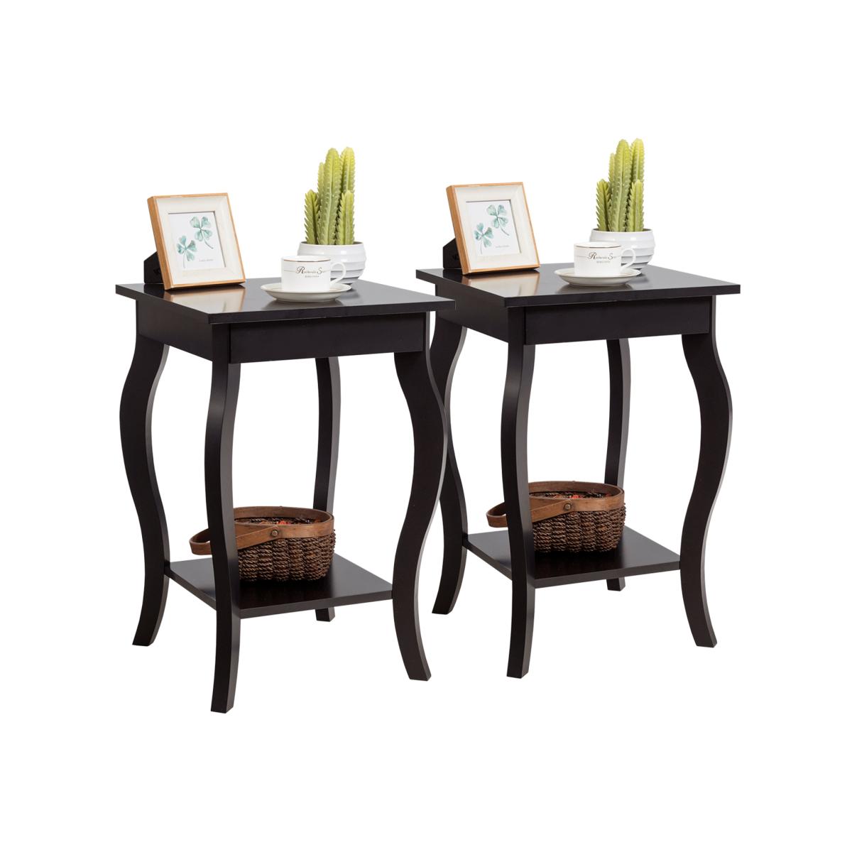 I’m a fan of these brown end tables because their gently curving legs add just enough character without overwhelming a space. They work particularly well in traditional or transitional living rooms and even sit comfortably in a modern scheme when paired with minimalist accessories. For styling, try grouping one next to an armchair with a small table lamp and a potted plant to introduce height and texture. The lower shelf is perfect for a woven basket of throws or a stack of art books, which keeps surfaces uncluttered and adds practical storage.
