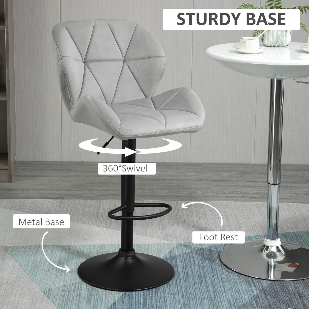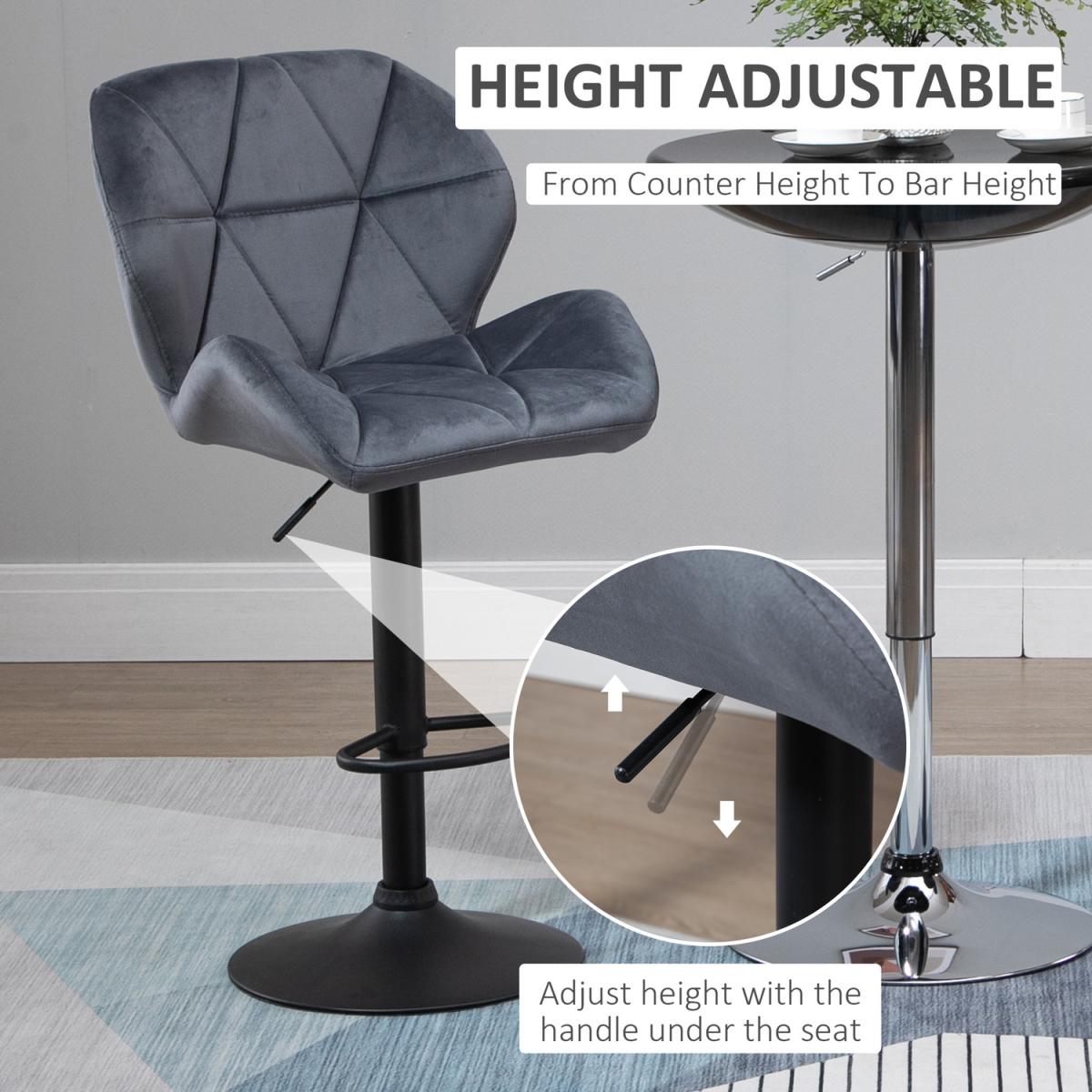 Inject beautiful style into your kitchen counter or bar dining area with these two stools from HOMCOM. Soft upholstery of the stools serves up high style. Filled with soft sponge to relax the body. Curved back and armless design supports the body whilst giving your body freedom. With the large round base, which is made from metal, this stool keeps upright and steady when in use