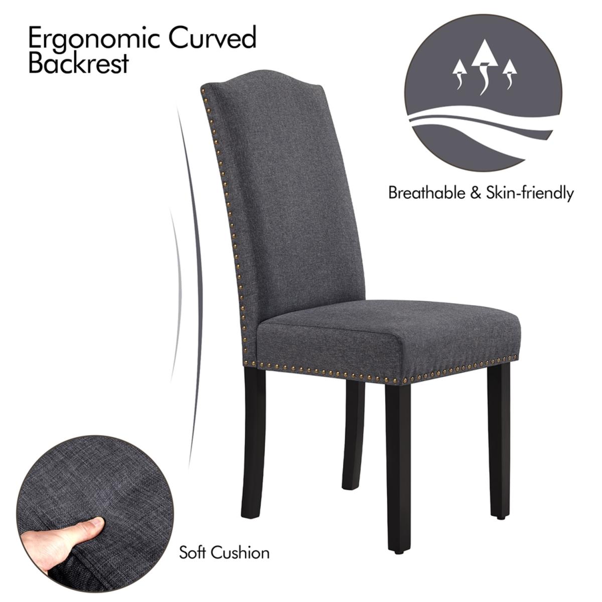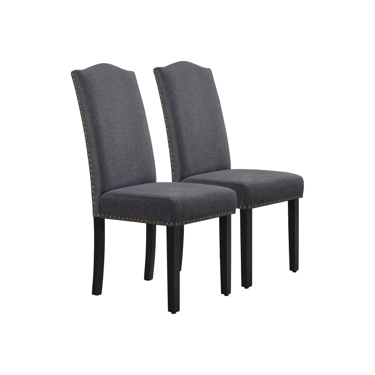 Set of 2 Fabric Dining Chair with Nailhead Trim - Dark Grey