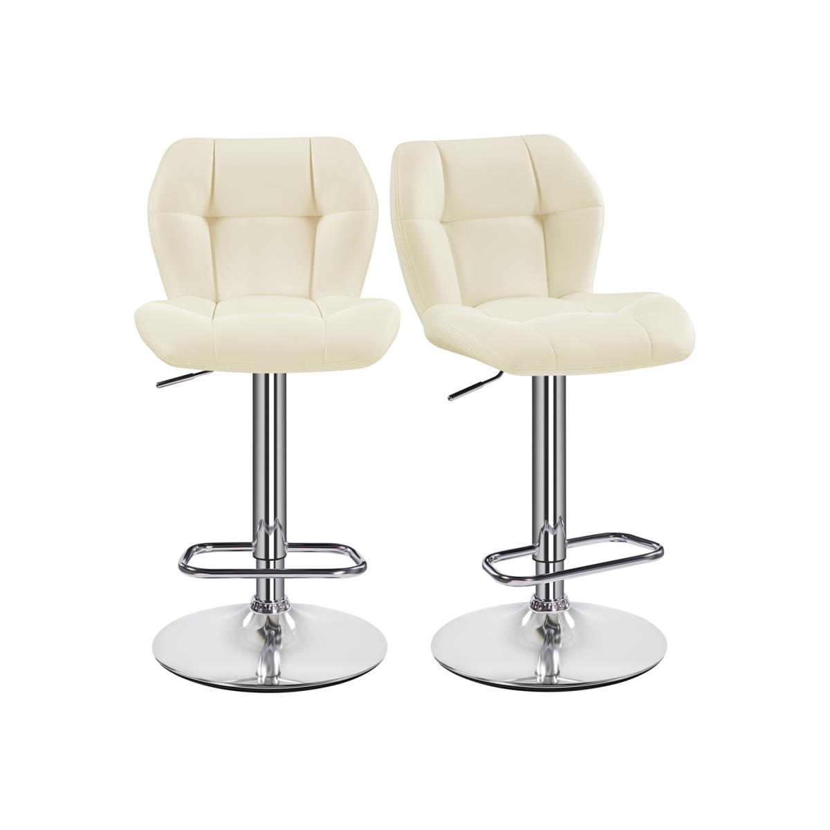 Our 2-piece swivel bar stool set is covered with water-resistant PU leather surface, filled with high-density foam, and supported by a sturdy electroplated steel frame. The high-resilience upholstery seat and back are designed for ultimate comfort. This counter-height stool set has a 360 degree rotating seat and an SGS-certified pneumatic cylinder. The swiveling seat eliminates the need for constant movement when talking or fetching something. Additionally, the gas lift handle allows for seat height adjustment between 62.5-84.5cm to cater to your seating preferences.