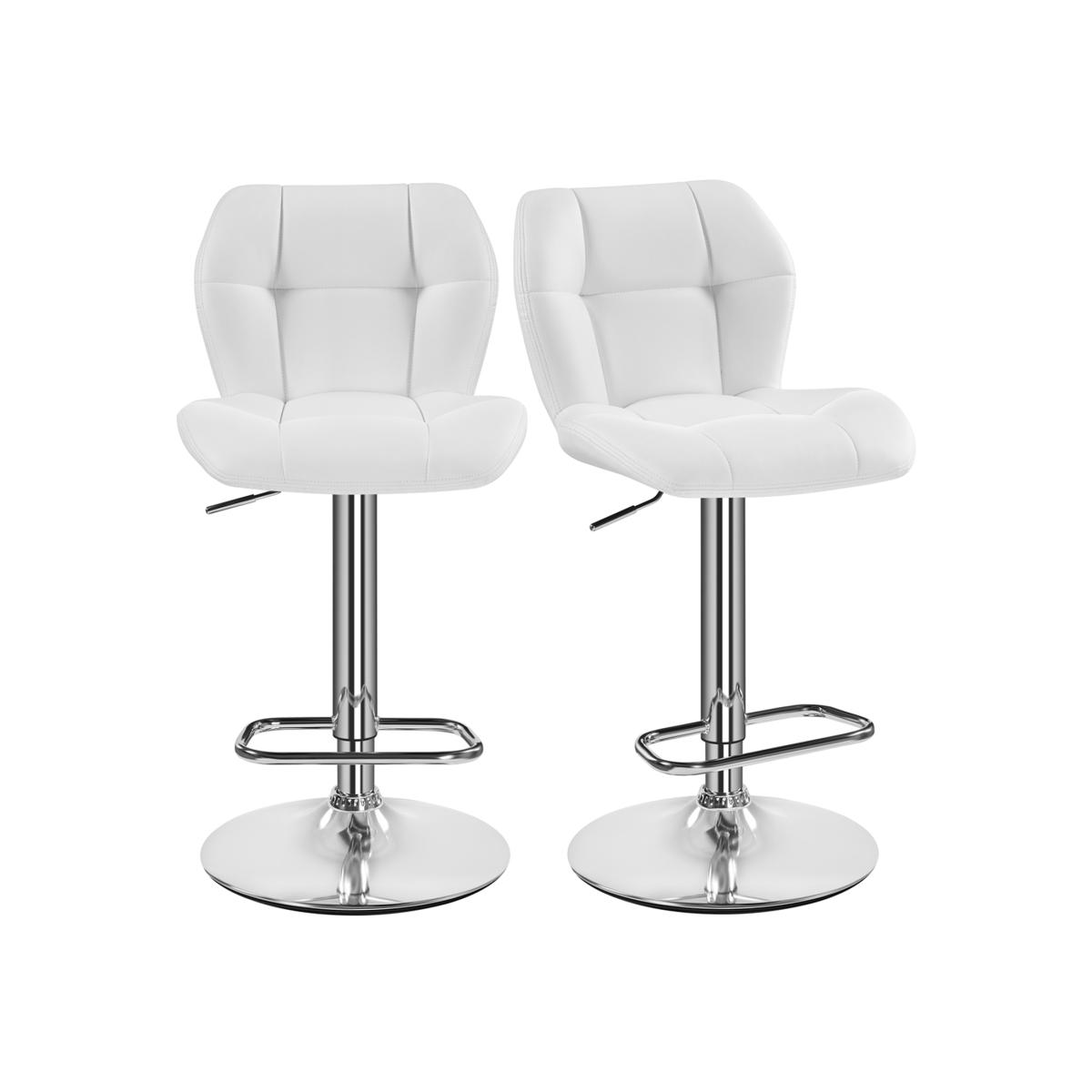 Our 2-piece swivel bar stool set is covered with water-resistant PU leather surface, filled with high-density foam, and supported by a sturdy electroplated steel frame. The high-resilience upholstery seat and back are designed for ultimate comfort. This counter-height stool set has a 360 degree rotating seat and an SGS-certified pneumatic cylinder. The swiveling seat eliminates the need for constant movement when talking or fetching something. Additionally, the gas lift handle allows for seat height adjustment between 62.5-84.5cm to cater to your seating preferences.