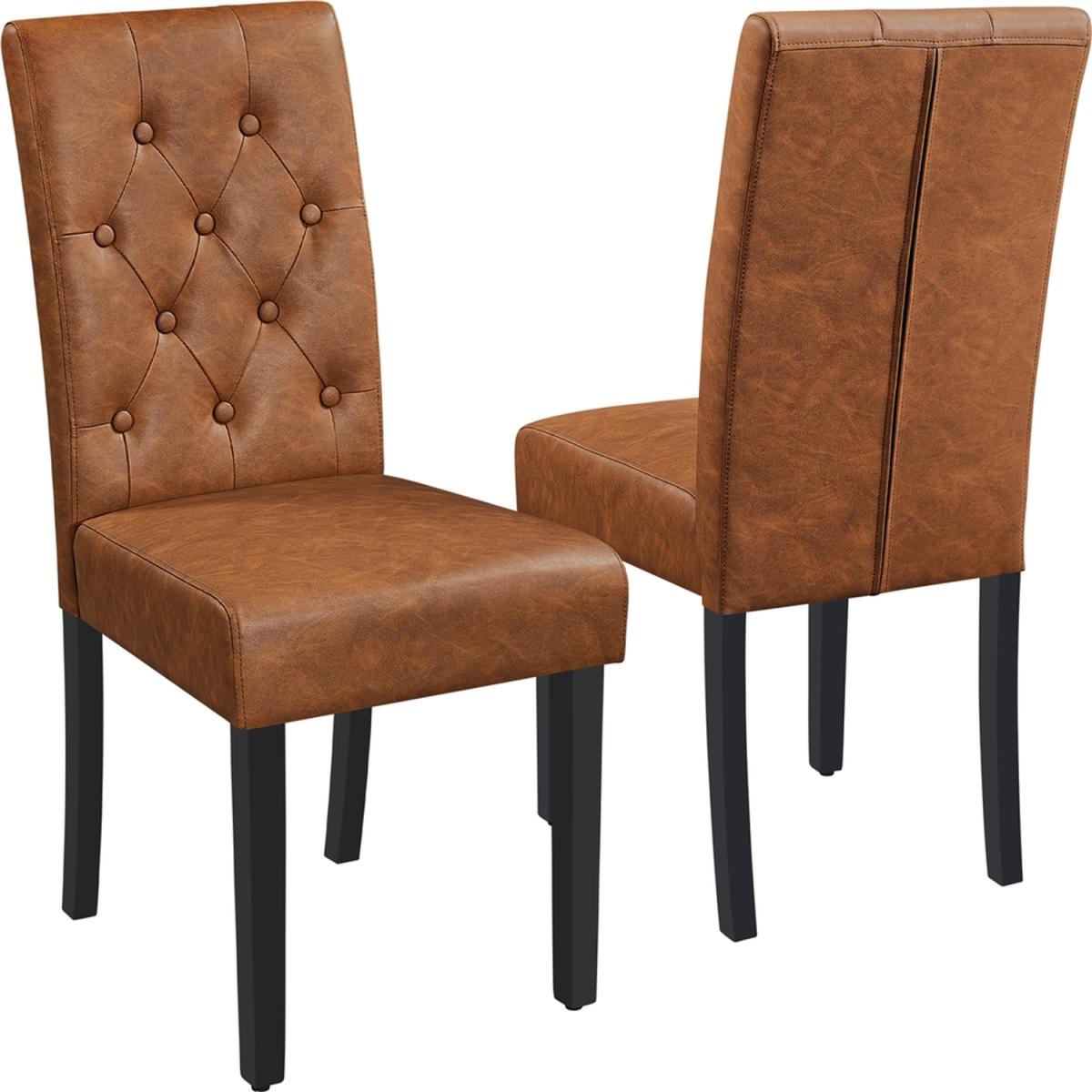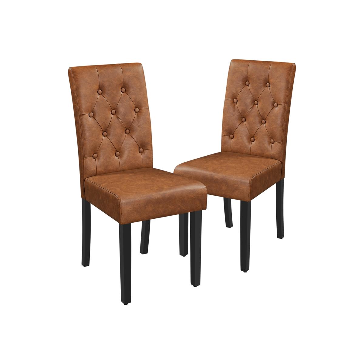 Set of 2 Faux Leather High Back Dining Room with Solid Wood Legs - Retro Brown
