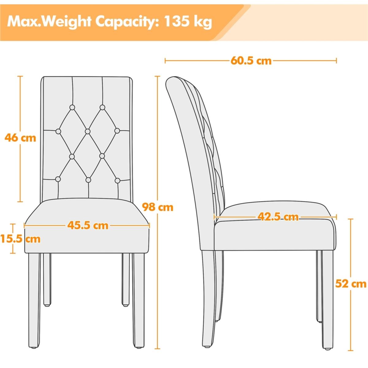 Make every long-time sitting comfortable! The dining chair is constructed with a solid wood frame, a decent size seat, and a tall backrest. Durable and waterproof PU leather seats filled with extra high-density foam and decorated with button tufting on the back. Simple style and elegant color perfectly fit your unique space and atmosphere.