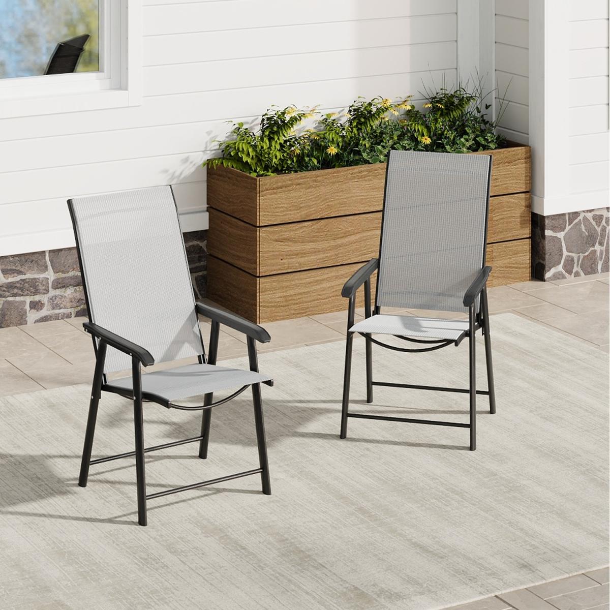 Set of 2 Foldable Metal Frame Chairs - Grey