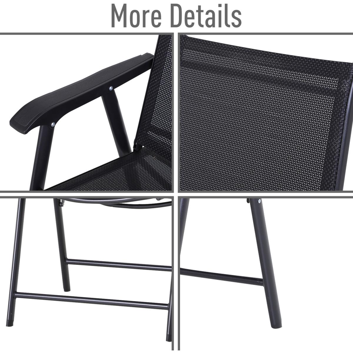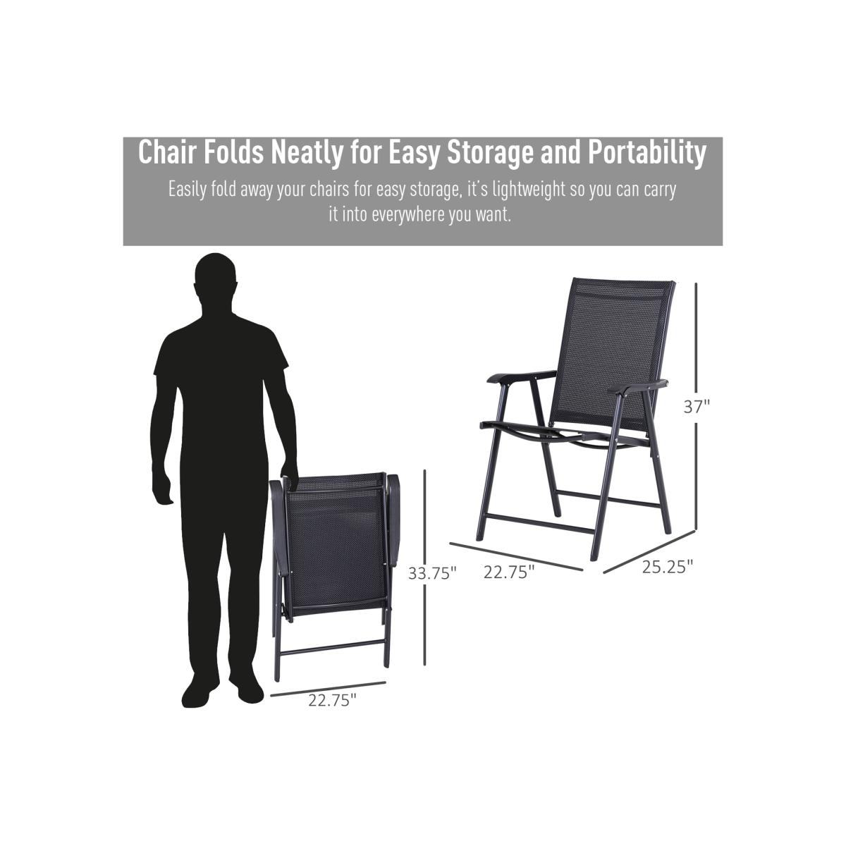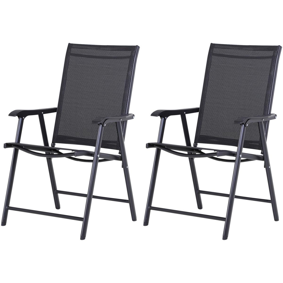 Never be stuck for a seat again, whether you're home or away, with this set of two black folding chairs from HOMCOM. Using metal with a powder coating for extra strength and durability, the frame is crafted into a classic outdoor chair style for simplicity, with Textilene seats that allow your skin to breathe - perfect for the hotter days. With a tall, slightly tilted back, wide seat and mid-rise armrests, each seat will support you whilst keeping you comfortable for long periods of time, with their lightweight and folding design meaning you can move them, store them and move them around with absolutely no struggle.