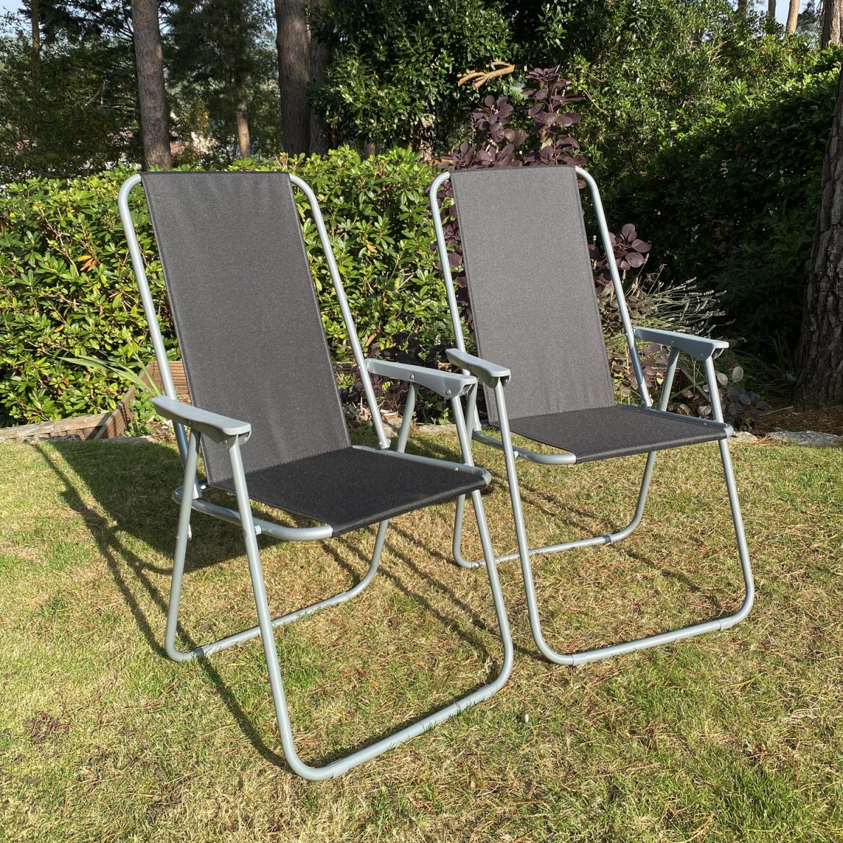 Set of 2 Folding Garden Furniture Set Chairs - Black