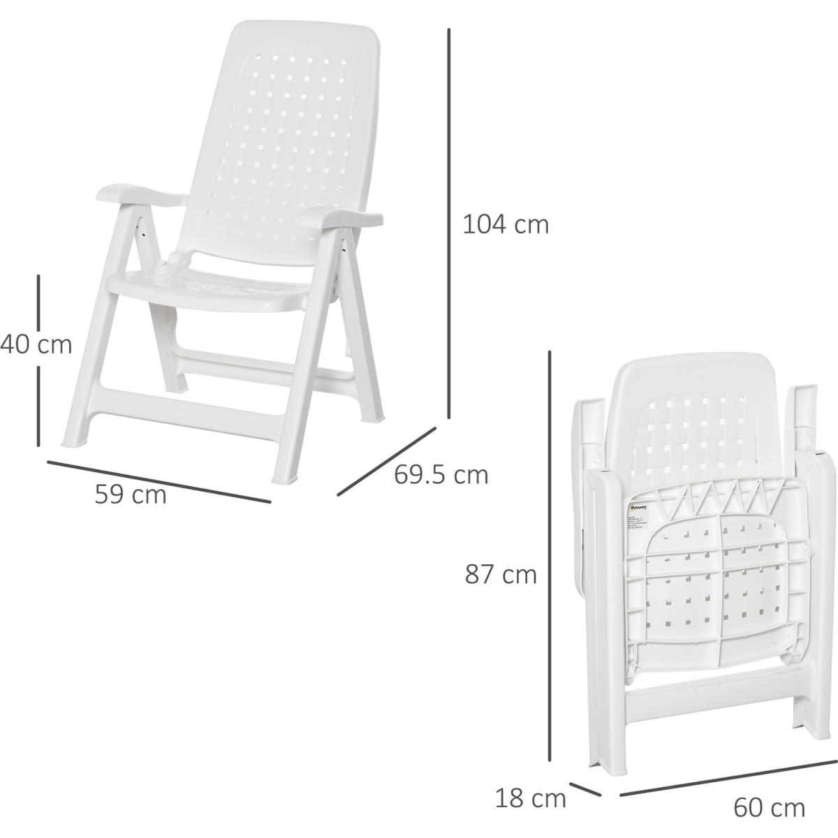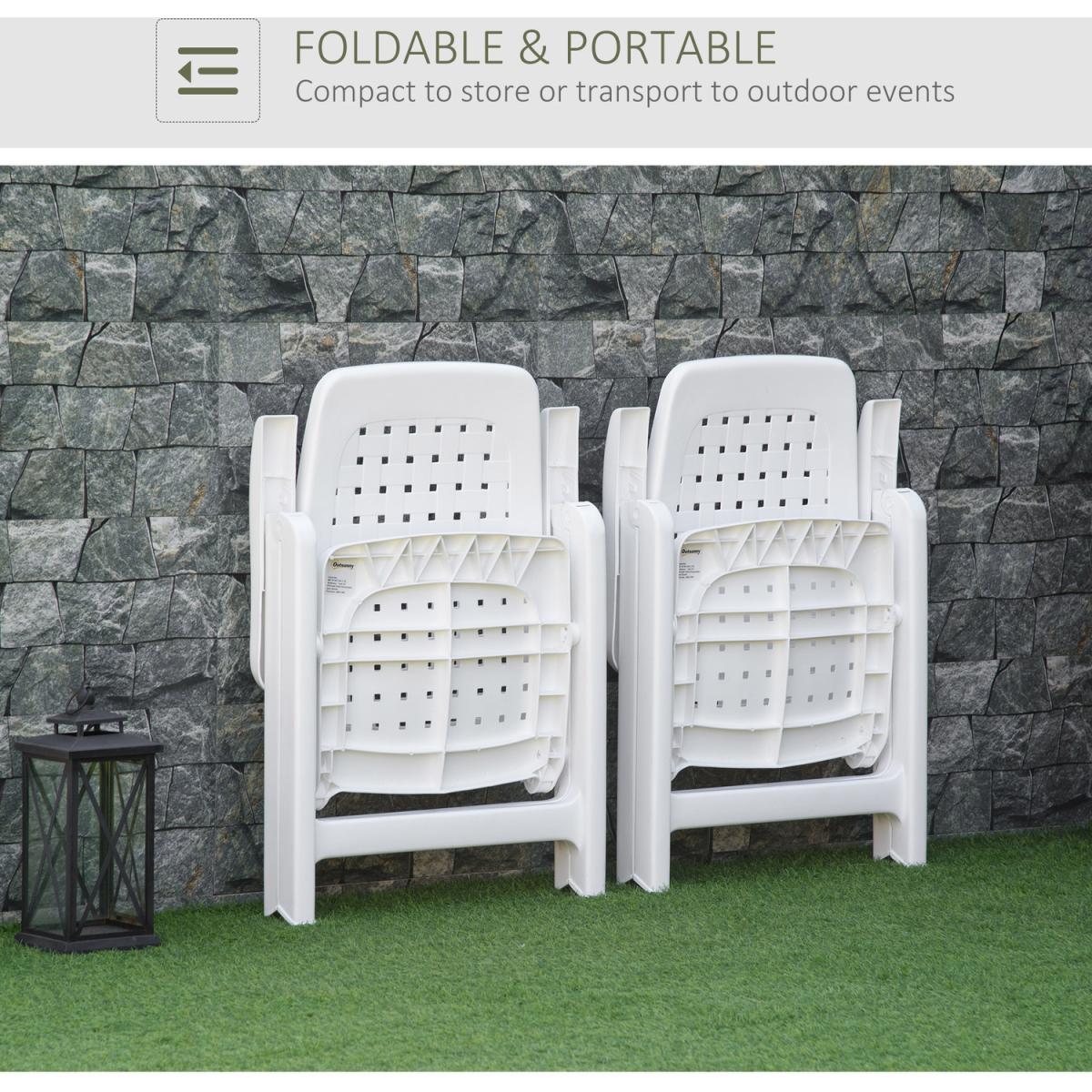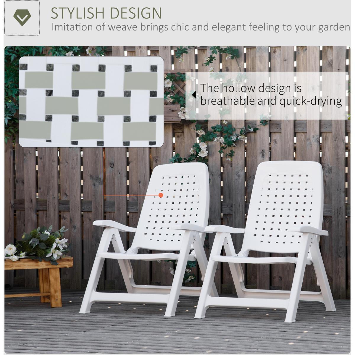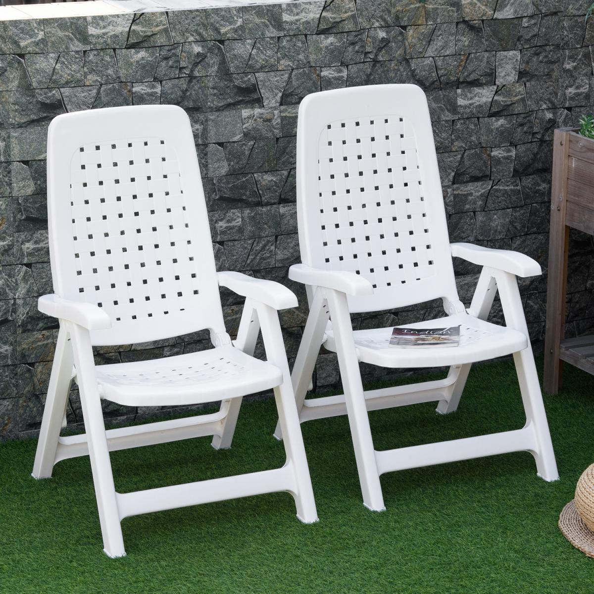 Set of 2 Folding Plastic Dining Chairs with 4-Position Backrest - White / Set of 2 chairs