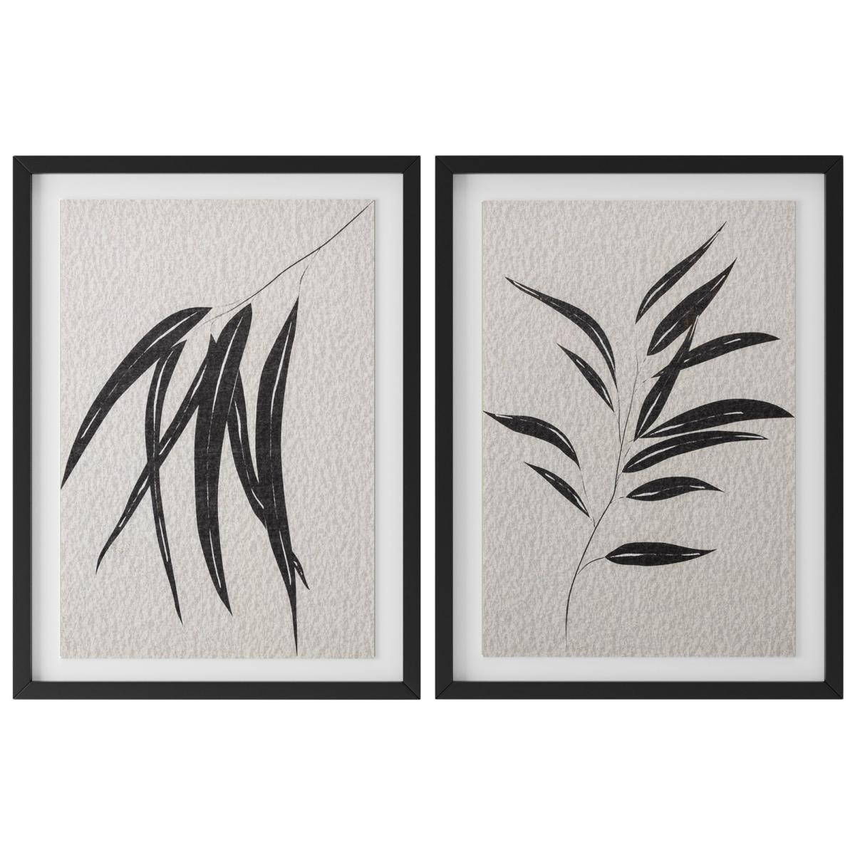Set of 2 Framed Leaf Prints Black and white