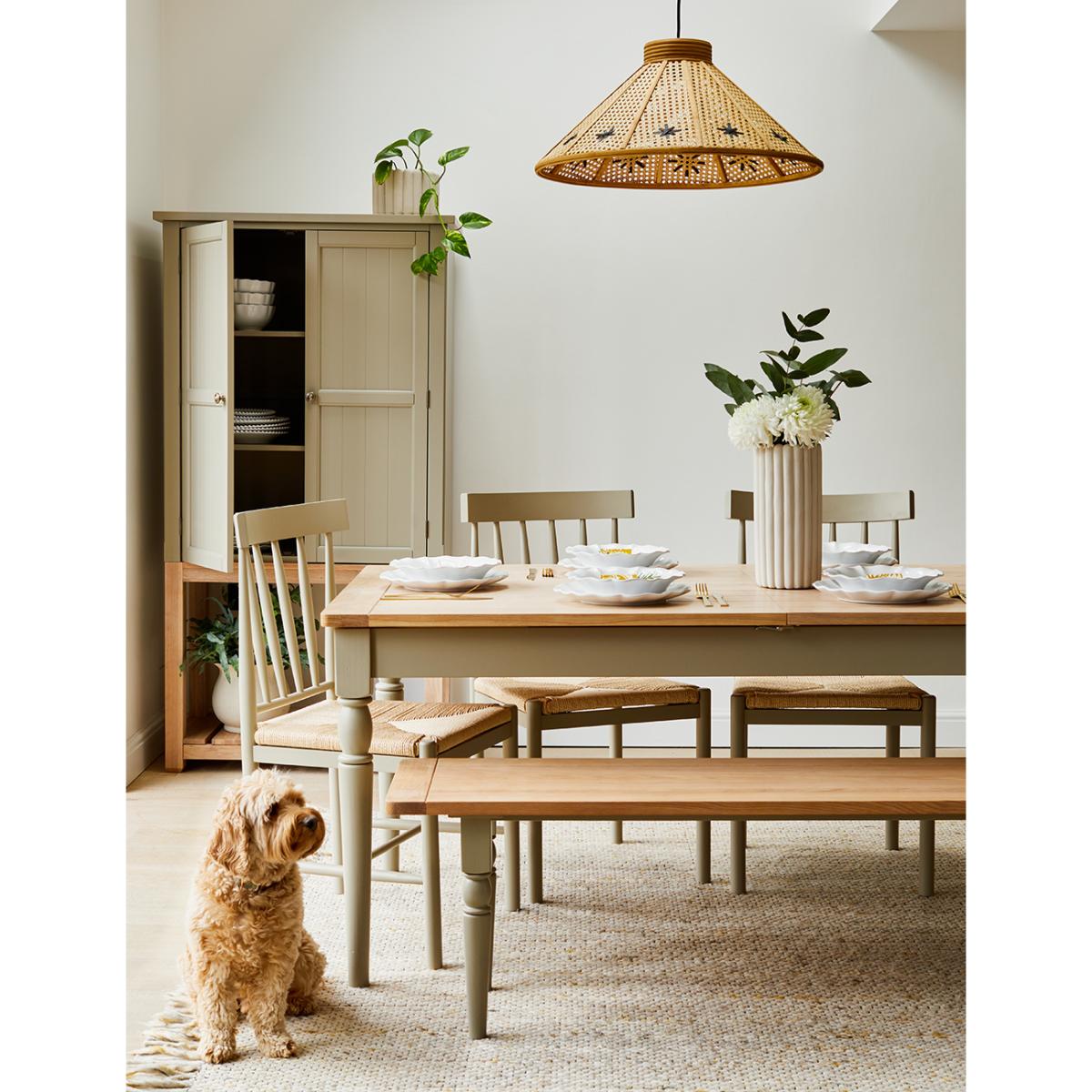 Seat your loved ones around the dining room table on our Set of 2 French Grey Wooden Dining Chairs with a Woven Rope Seat Detail. These dining room chairs are crafted from solid beechwood into a beautiful, durable frame with rungs to rest your feet. The frame is hand-painted in a stylish french grey colour and completed with a matte finish that perfectly complements our French Grey Oak Extendable Dining Table. Each curve is created with expert craftsmanship and attention to detail, resulting in a seamless finish. The seats are hand-woven with rope into a detailed dutch weave pattern that adds a country farmhouse feel to this modern dining chair. Pair these solid oak dining chairs with our French Grey Luxury Oak Dining Table Bench for a full dining room set.