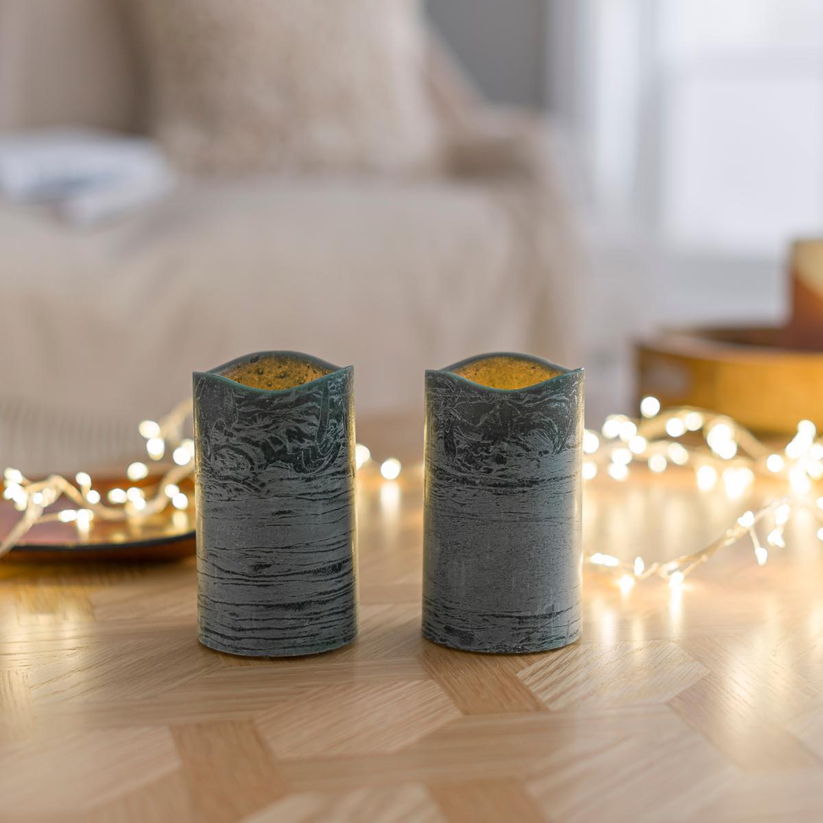 Set of 2 Frosted Eucalyptus LED Pillar Candles Green