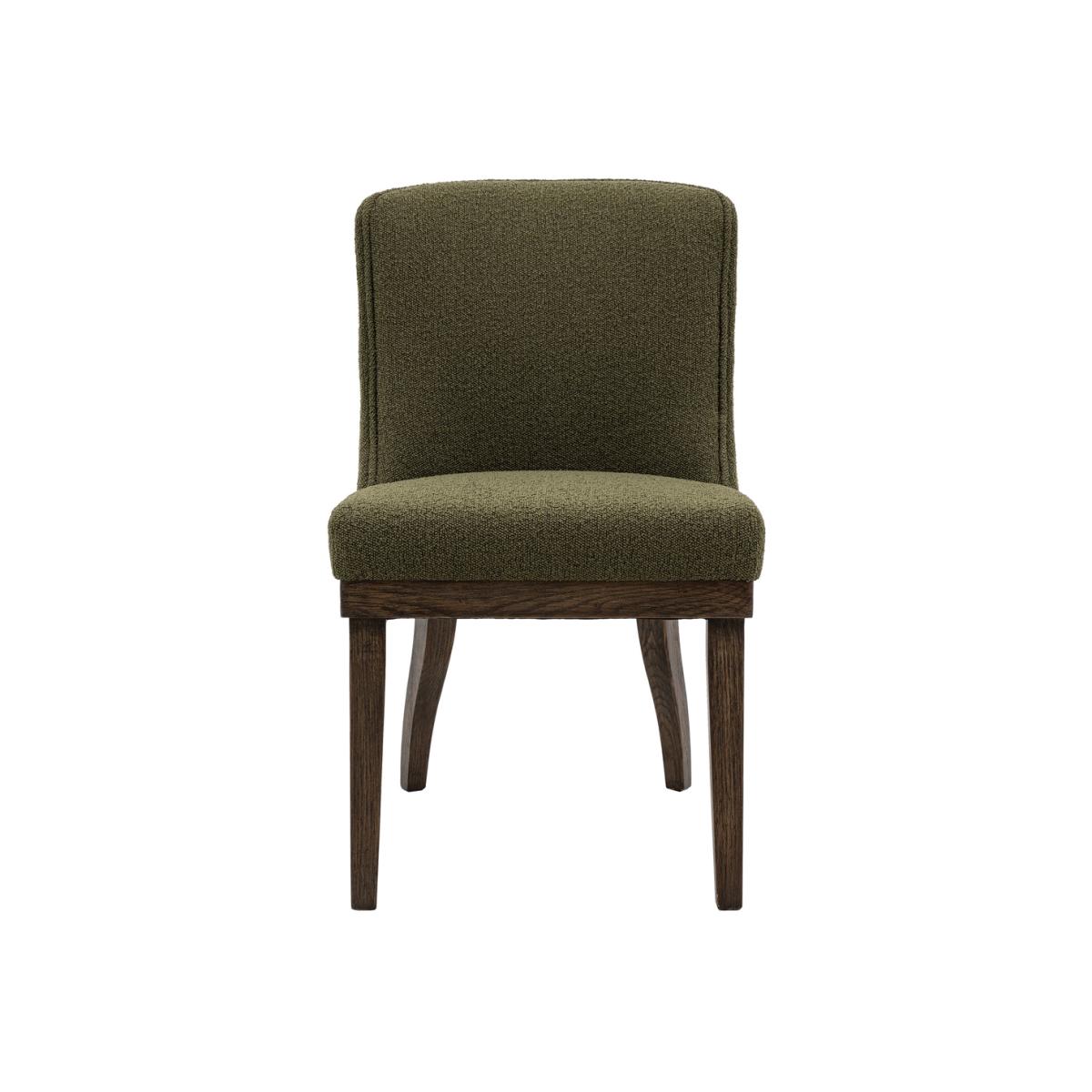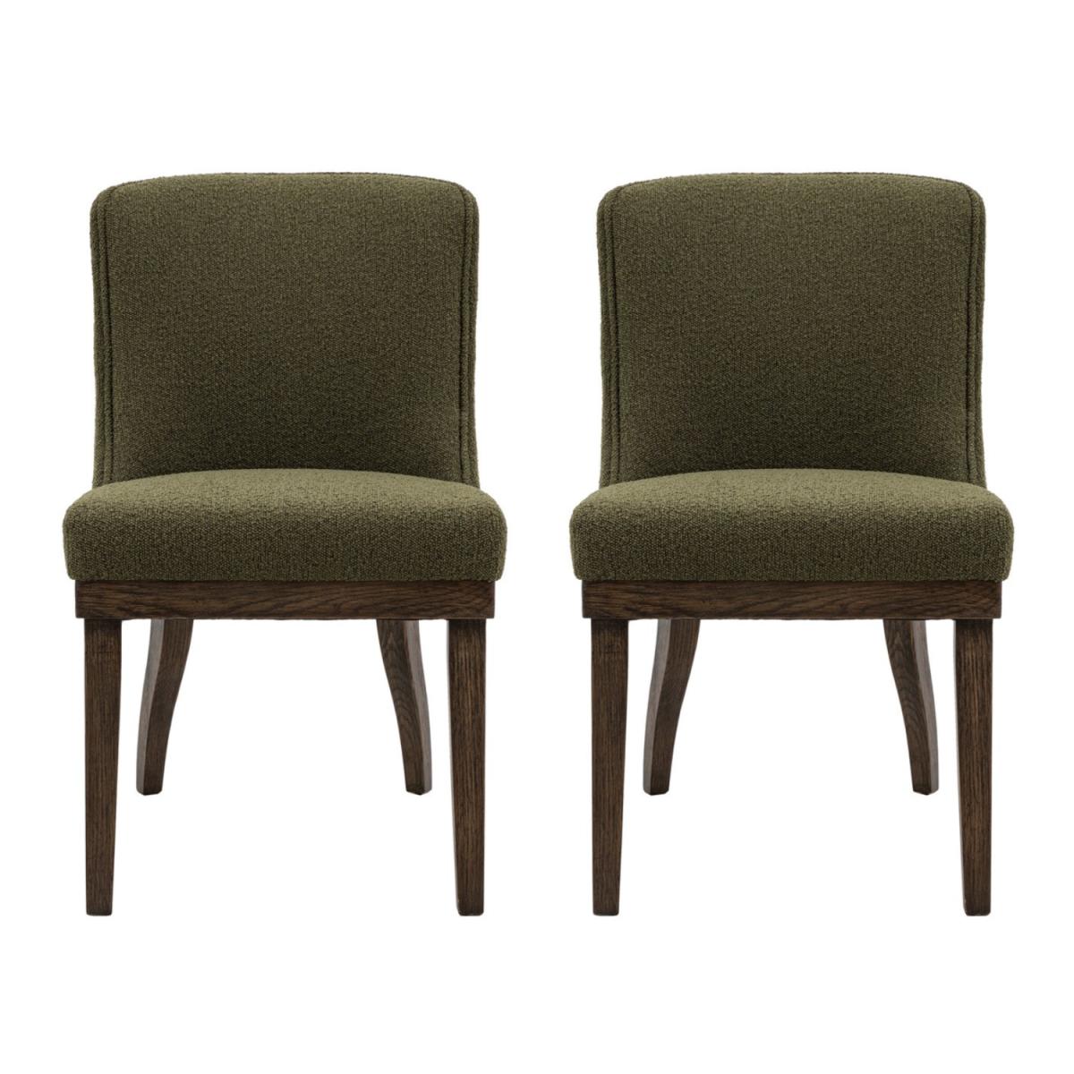 Fully upholstered in luxurious green fabric, offering a soft, comfortable seating experience. : A fusion of traditional and contemporary styles creates a timeless look for your dining space. : Durable wooden legs provide stability and complement the upholstery beautifully. : Ergonomically designed for enhanced comfort and style. : Available in green and taupe to suit a variety of interiors. For your convenience, these dining chairs are sold in pairs. Add a touch of traditional style with a contemporary twist to your dining space with these elegant dining chairs, sold in a pack of two. Their gently curved backs and plush seats are fully upholstered in a beautiful green fabric that adds a pop of colour while maintaining a sophisticated look. The stylish wooden legs perfectly complement the upholstery, blending traditional and modern aesthetics seamlessly. For added versatility, these dining chairs are also available in a taupe fabric option, allowing you to choose the perfect match for your decor. Whether you’re hosting a dinner party or enjoying everyday meals, these chairs provide both comfort and timeless style. Number of chairs: 2 Dimensions: W51.5 x D63.5 x H84.5 cm Product Weight: 19kg Finish: Upholstered in green fabric with the elegant wooden legs Material: Solid Oak, Plywood and Poly Polyfibre Assembly required: Yes Maximum Load Weight: 120kg Packed dimensions: W92 x D53 x H101 cm For domestic use only. Domestically UKFR certified