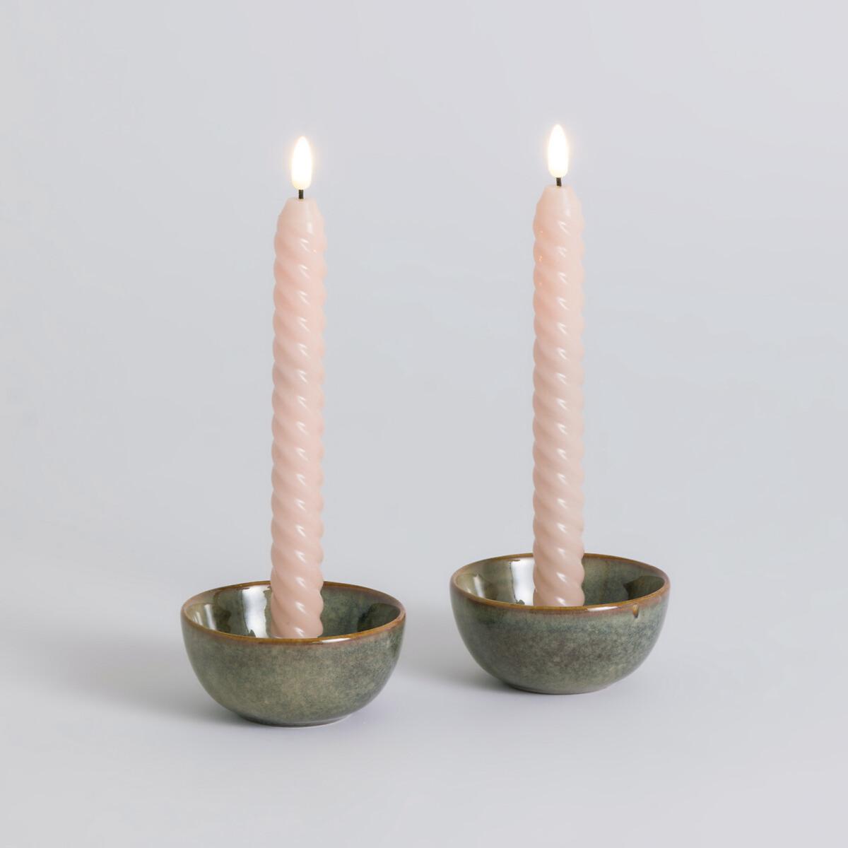These twister candles are a versatile addition to any interior, offering the cosy charm of traditional candles with added safety and convenience. I love how their soft pastel colour and textured design bring a subtle, vintage feel, making them great for both modern and classic settings. They work particularly well in compact spaces like shelves, mantels, or centrepieces where real flames might pose a hazard. Practical styling tips include pairing them with simple glass hurricanes or placing them on decorative trays for a polished look. They also lend themselves perfectly to layered arrangements with greenery or seasonal accents, creating a warm and inviting atmosphere without the worry of dripping wax or fire risk.