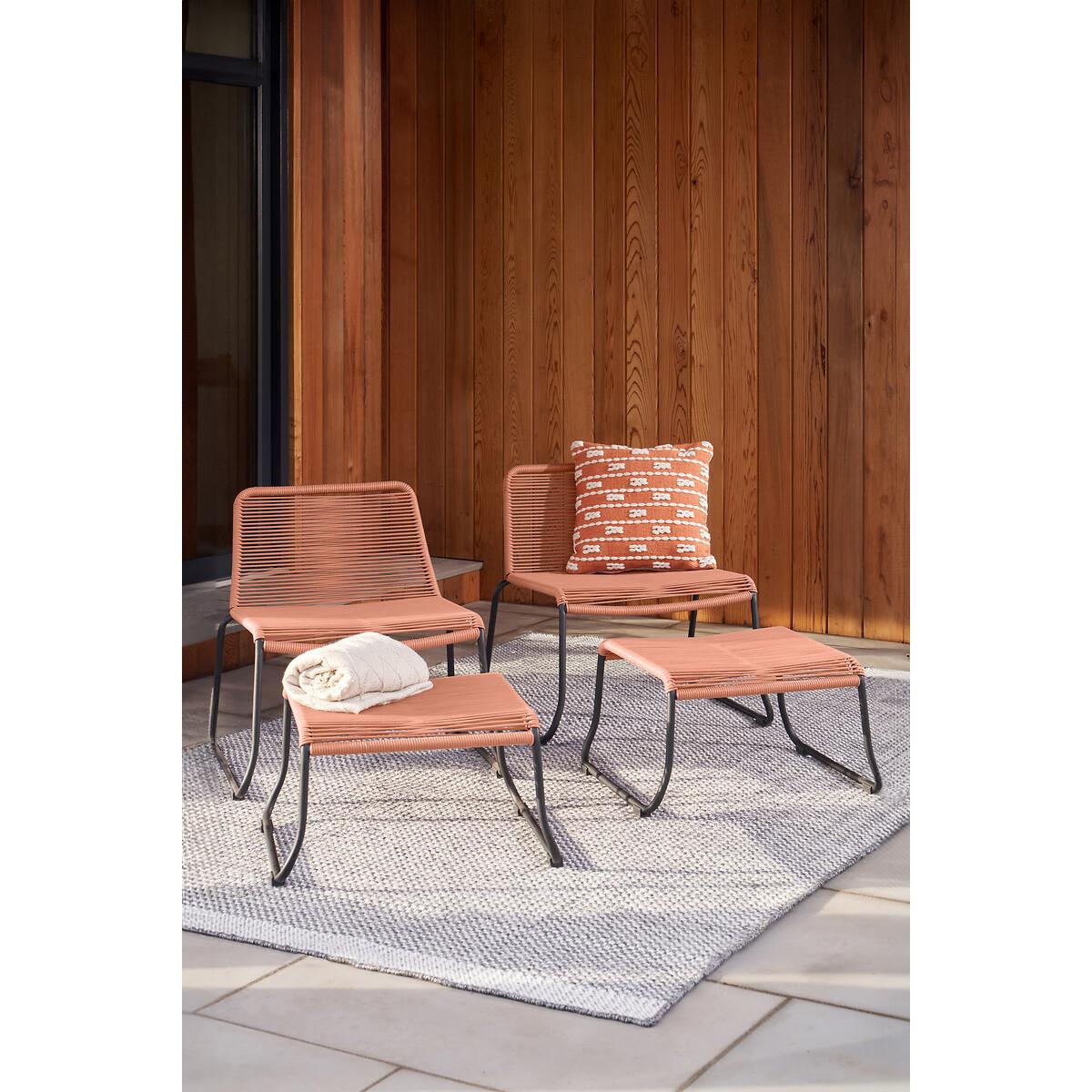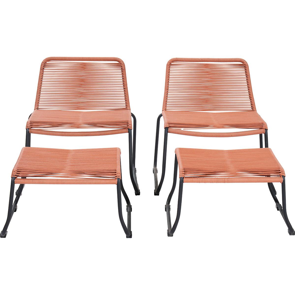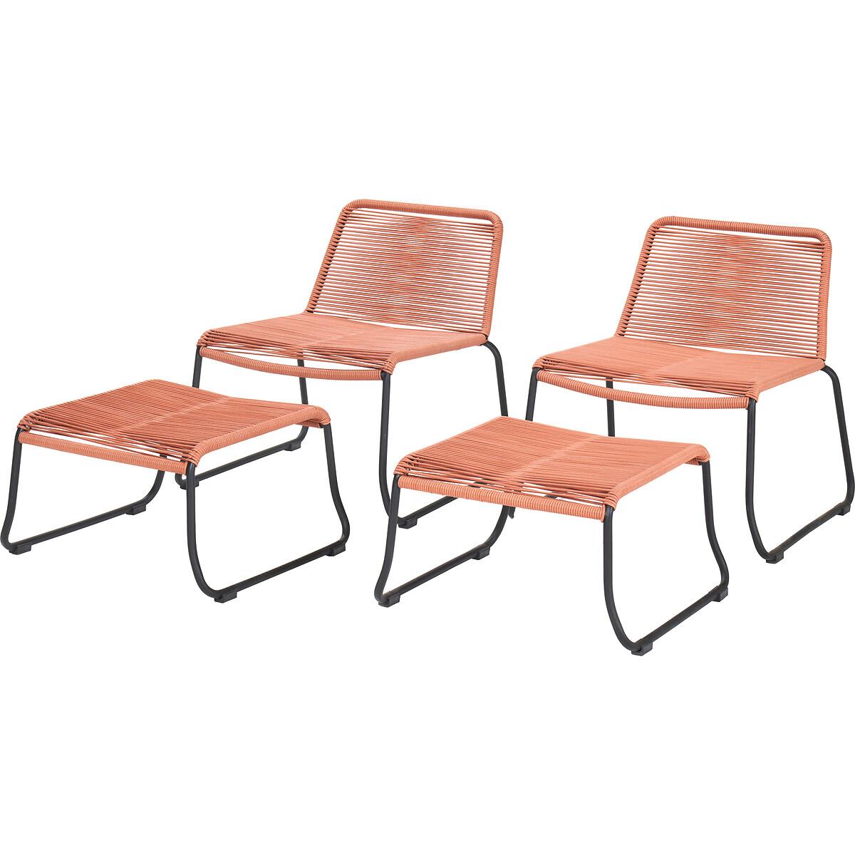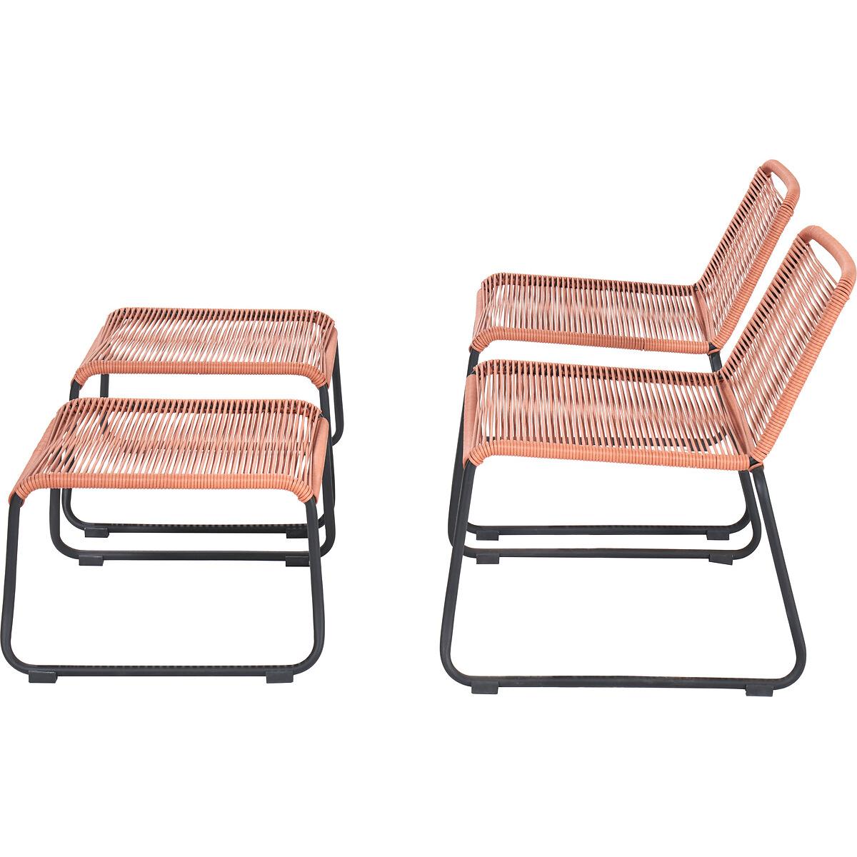 Please note: this product cannot be delivered to all Offshore Islands, Northern Ireland or Republic of Ireland - postcodes starting with; AB, BT, DD, IV, KW1-14, PA21-38, PH, TR17-27 & ALL ROI.Create a comfortable and modern outdoor lounging area with the gorgeous on-trend Pang Hocker Set, made in Vietnam and comprising of 2 lounging chairs and 2 footstools. This set has a cleverly designed polyrope in a simple openweave, which helps spread the weight evenly across the black powder-coated steel supporting frame. The Black coloured weave is weather resitant and non-porous, and has a soft touch finish, ensuring maximum comfort. A great space saving set for the smaller garden or additional pieces for that cosy reading nook. Product Dimensions:Chair: 72x67x71cm. Footstool: 55x65x33cm. Packaged Dimensions: 86cmx80cmx72cm Weight: 40kg. Composition: Steel 65% and Wicker Rope 35%Please note this item is a large piece of furniture that will require some self assembly. Please ensure you have space to receive delivery. This product will be dispatched by one of our trusted suppliers. You’ll be contacted by their selected courier about your delivery. PACIF01