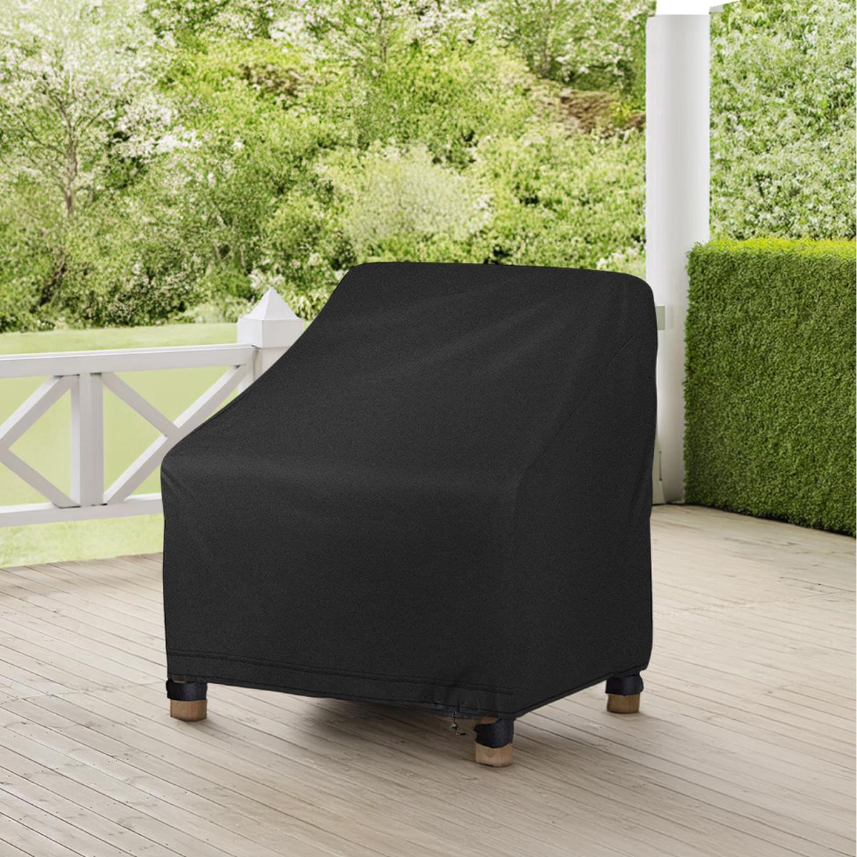 Shield your outdoor furniture all year with this robust cover made from durable Oxford fabric. Treated with a waterproof coating, it protects against sunlight and moisture, helping maintain your furniture's original look. The high-quality material resists tears and wear, ensuring dependable performance even in strong winds. Drawstrings and velcro straps provide a secure fit for reliable protection when not in use. Set of 2 Garden Chair Waterproof Covers - Black / 97cm W x 79cm D x 74cm H