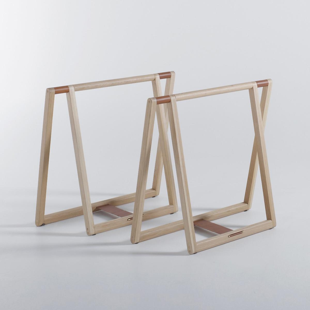 Gary trestles. Designed by Emmanuel Gallina exclusively for AM.PM. A contemporary shape. The perfect combination of wood and leather. Team with your choice of table top in glass or oak, available on the website.