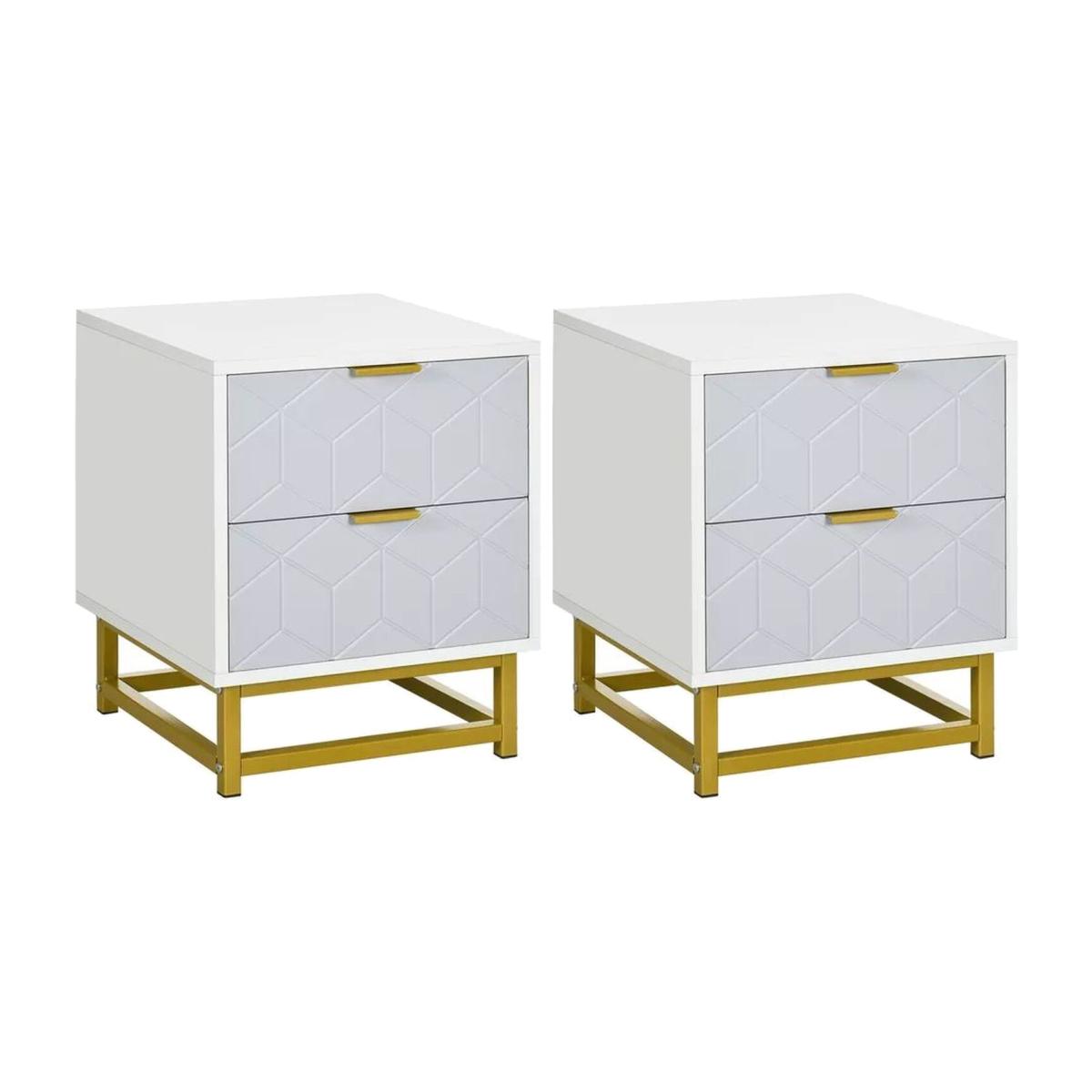 Set of 2 Geo Scandi Bedside Tables - White and Gold