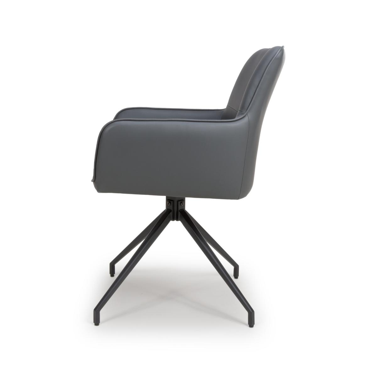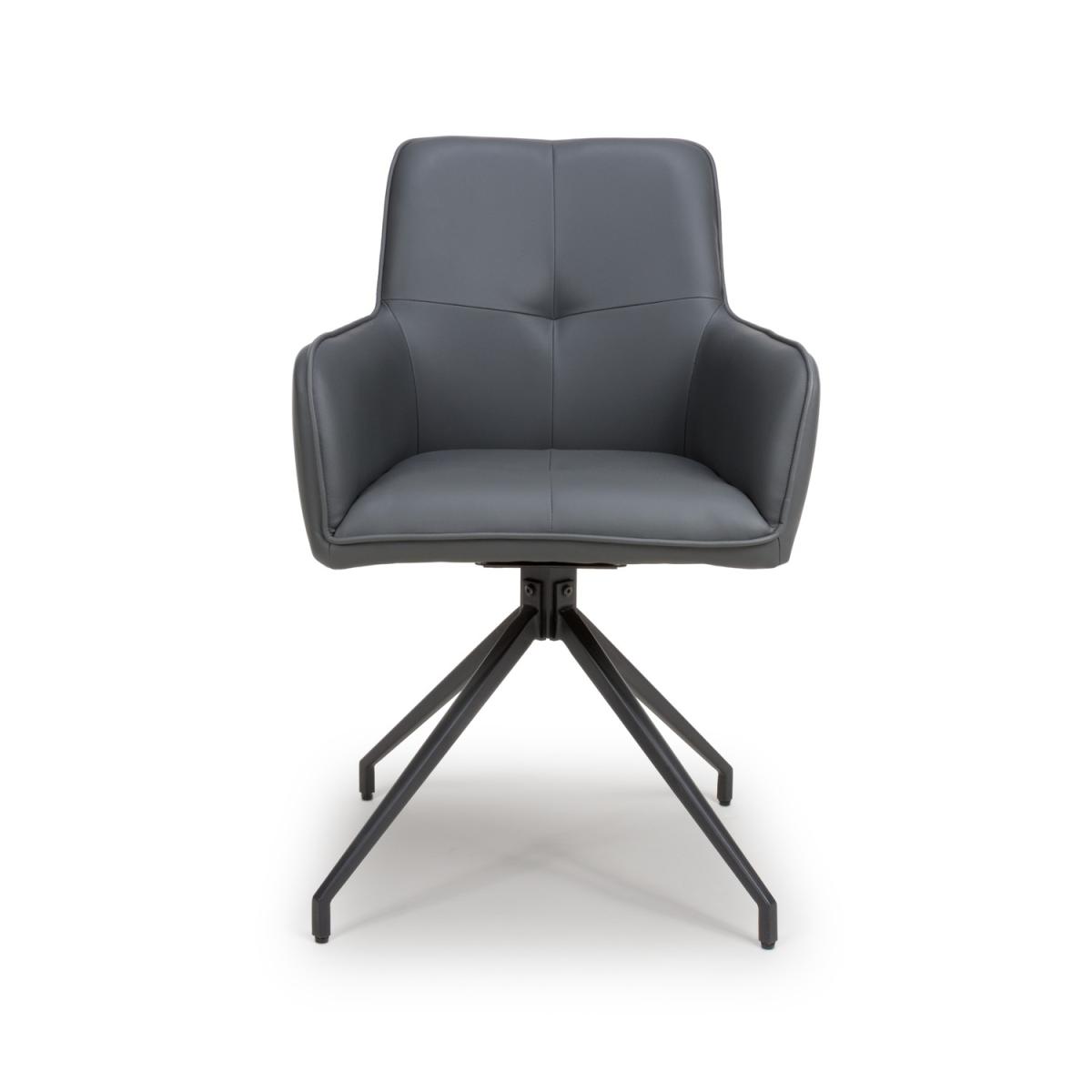 Swivel Dining chair Grey Faux leather Carver style