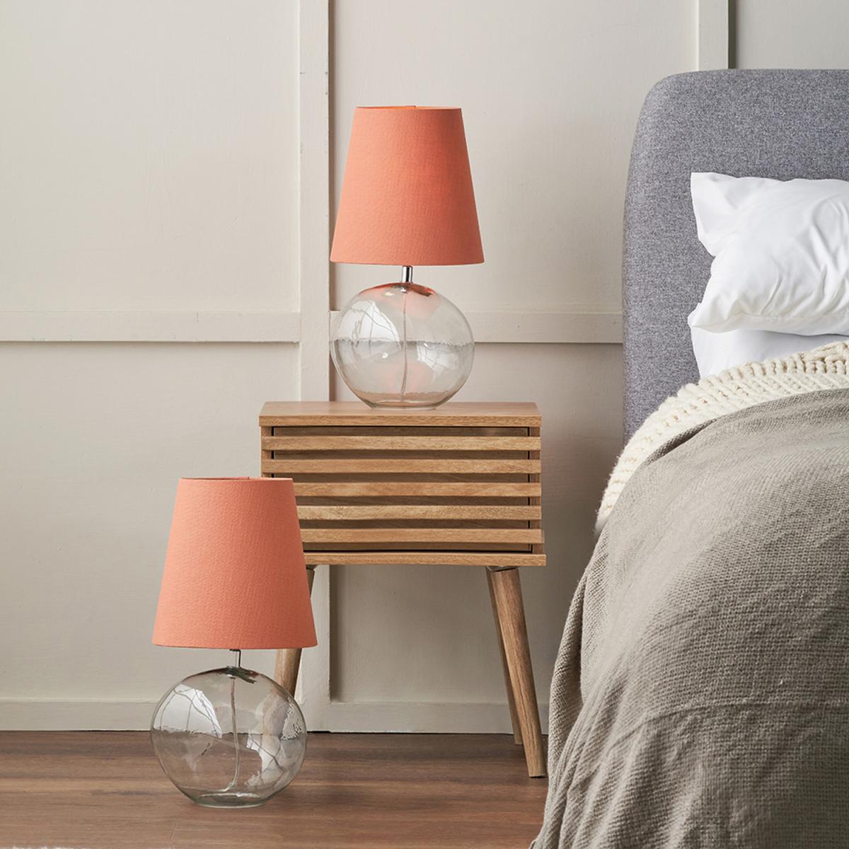 I love this set of two Hallie lamps for their versatility and fresh pop of colour. The orange fabric shades bring warmth and a cheerful touch, making them ideal for bedrooms, living rooms, or even a hallway where you want to create a welcoming vibe. Their transparent glass bases add a contemporary edge, so they pair well with both modern and minimalist interiors. For styling tips, consider placing one on a bedside table or console for symmetry, and use the pair to frame a mirror or artwork. They also work well with neutral or earthy tones, allowing the orange to stand out without overpowering the space. Overall, they’re a practical yet stylish addition that can easily refresh your room’s look.