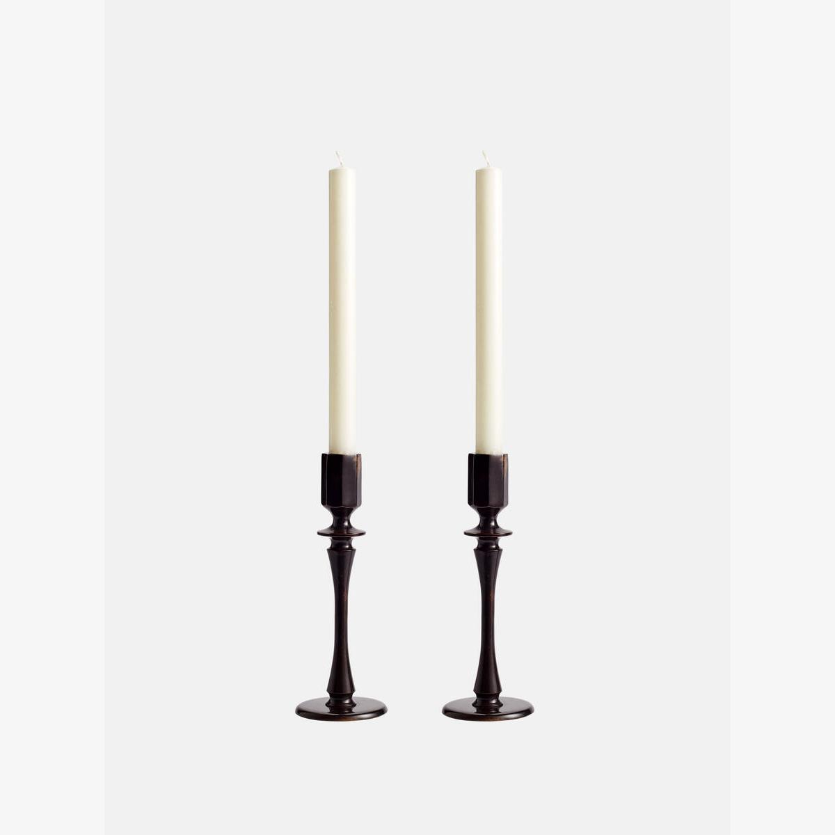 Bring unexpected texture to tables and mantels with the Hansen candleholders, inspired by vintage pieces found in our Houses. Crafted by artisans in India, they are cast in moulds and created from oxidised brass, which creates a natural patina over time. Fill with tapered dinner candles, and mix and match with the Bruyere candles to echo the mood of 180 The Strand. • Inspired by vintage pieces found in 180 The Strand • Set of two small candleholders • Handmade by local artisans in India • Cast in moulds • Oxidised brass