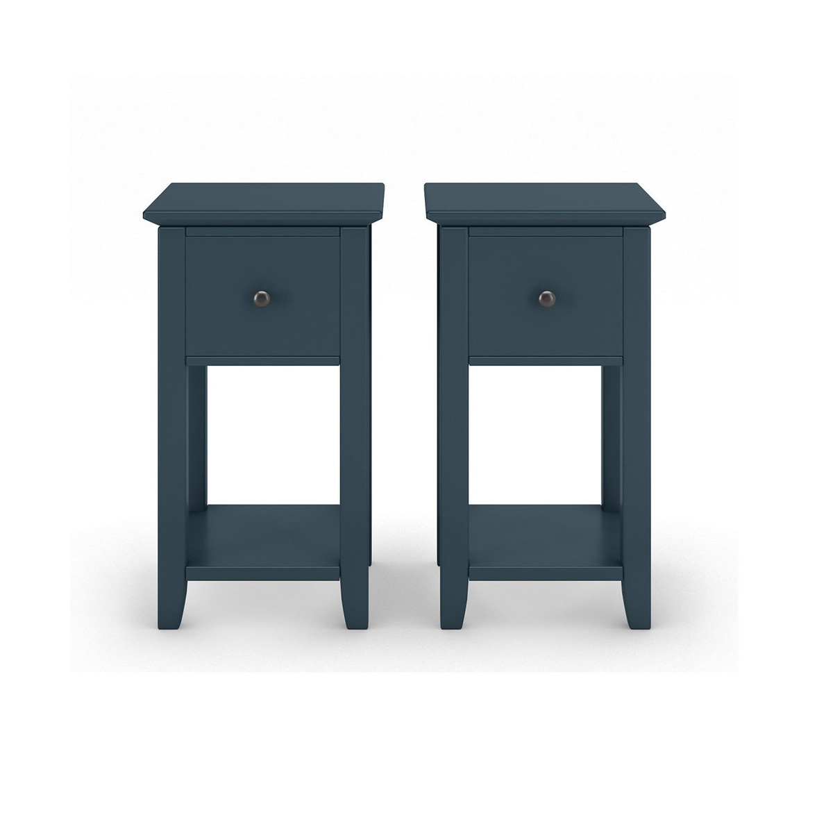 Compact and sturdy, these lovely bedside tables will add a touch of class to your bedroom. From the Hasting Collection, this pair comes in a smart Blue finish, which keeps these units looking airy and light. Narrow legs and open shelf design bring a touch of contemporary style. Expertly crafted from sustainable wood this sturdy bedside table pair feature a single generously sized drawer for your bedside belongings, for stylish and handy storage. We're so confident our furniture is built to last, our industry-leading guarantee covers any manufacturing failure on all furniture. That's our promise, and why our furniture comes with a 10-year guarantee that you can trust. Excludes: outdoor furniture and any issues that are a result of normal wear and tear, improper care or accidental damage.