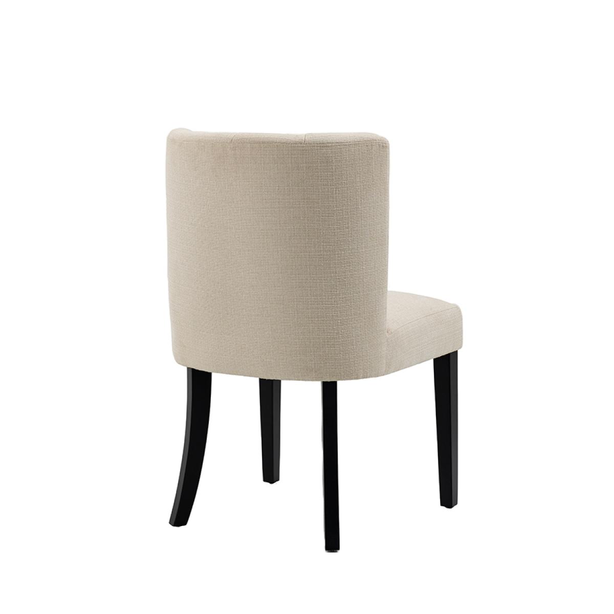 A chic dining chair inspired by upmarket hotel and restaurant interiors. Practical and durable linen effect fabric with a soft, tactile feel. Comfortable sprung seat with generous deep padding. Comfortable backrest with extra wide fluting design. Solid ash legs with matt black finish. Simple assembly required.