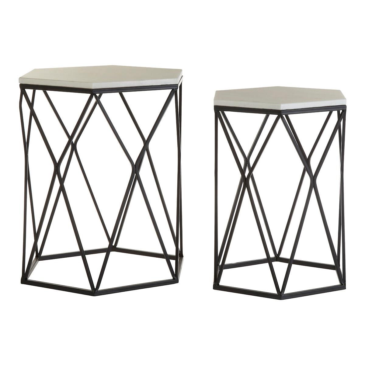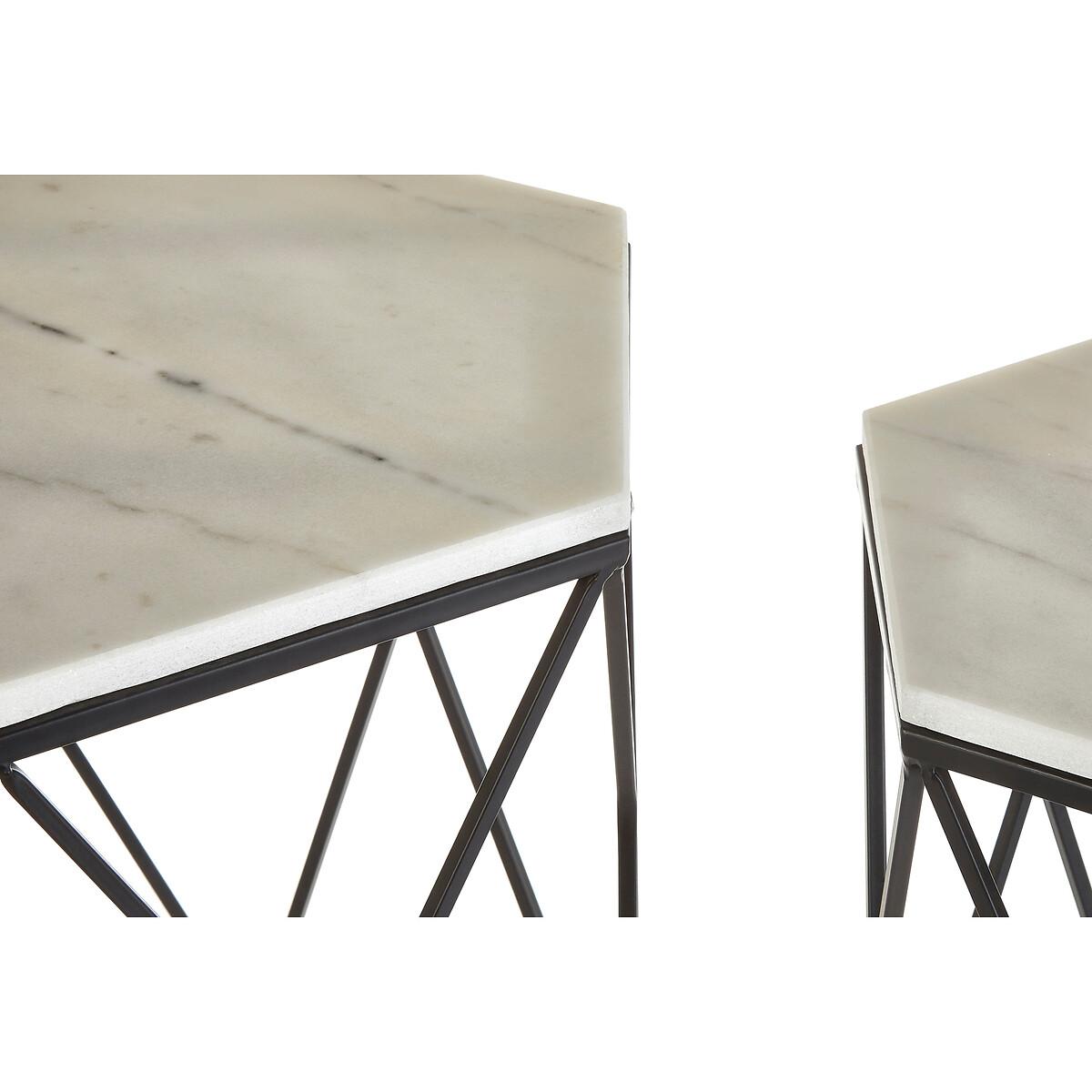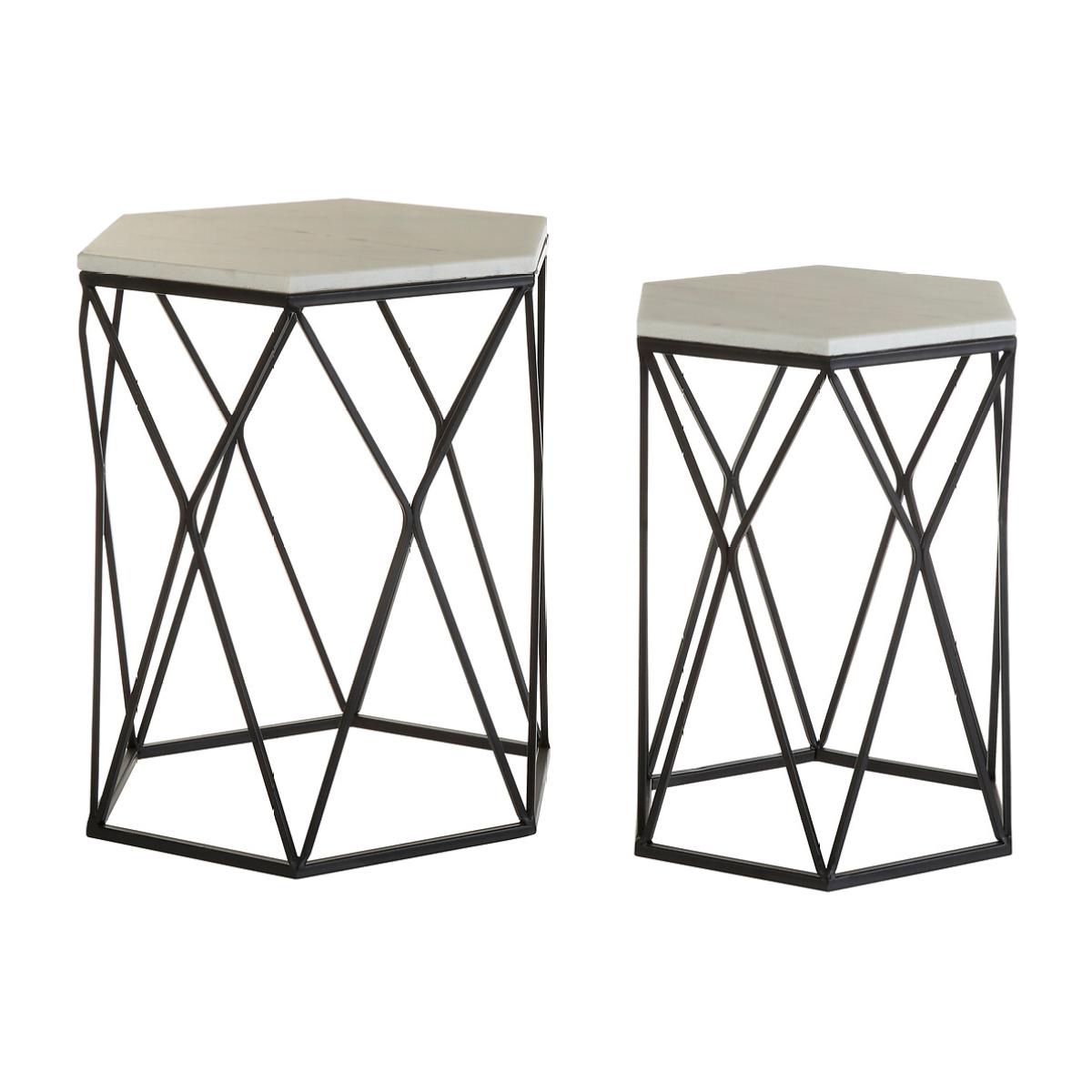 Set of 2 Hexagonal Side Tables in White Marble and Black Steel