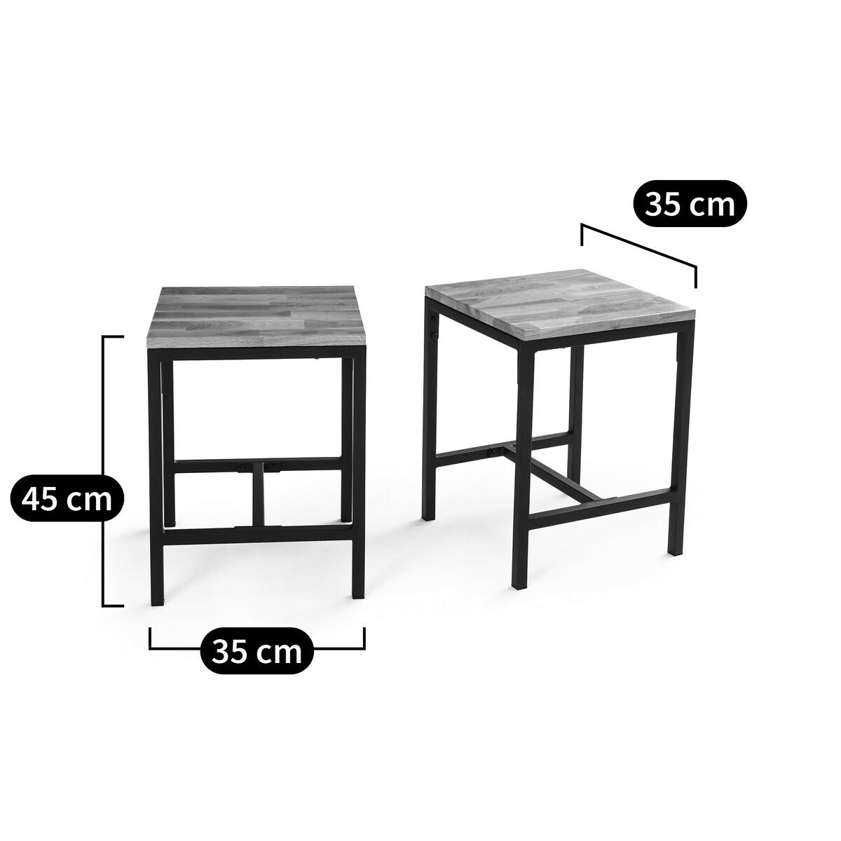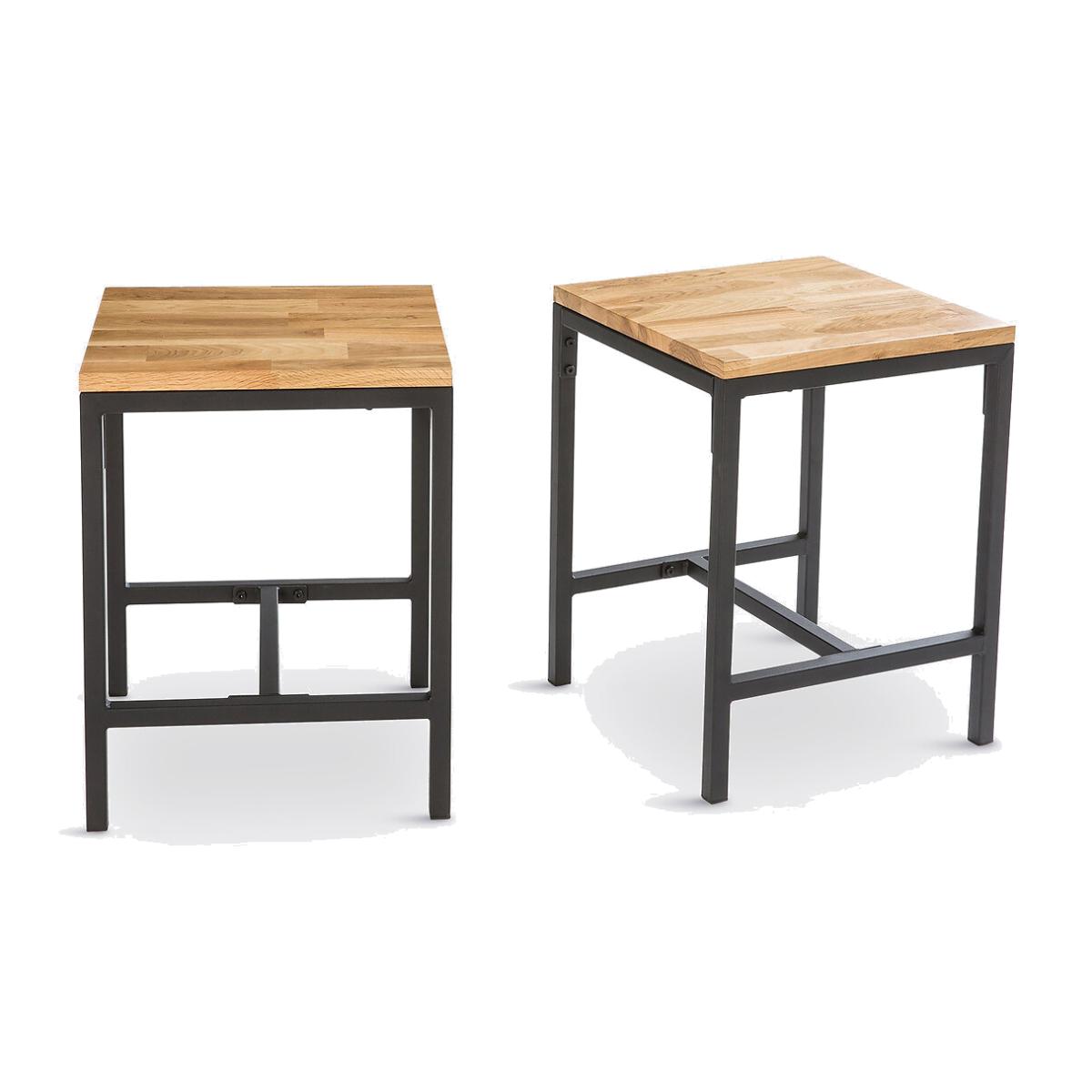 Channel the industrial look at home with these two Hiba stools. Square lines and a mix of solid oak and steel, for stools directly inspired by the industrial spirit. Product Details • Seat in solid oak with butt joints and nitrocellulose varnish finish. • Base in matte black lacquered steel, slightly raised epoxy finish. • Plastic pads on feet. Dimensions • Seat: 35 x 35cm. • Height: 45cm. Delivery:This product is sold for self-assembly. It will be delivered to your door. Note! Please check that all access points are large enough to accommodate your delivery (doors, stairs, lifts).Parcel dimensions and weight: • 51 x 19 x 45cm. • 10kg.