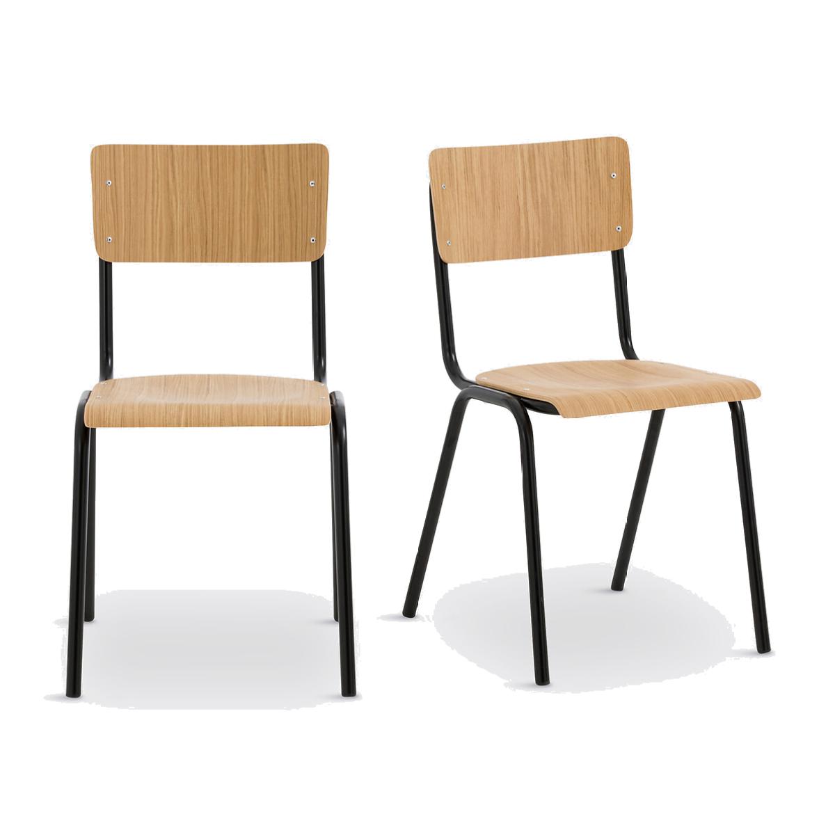 Hiba combines vintage inspiration with a college or workshop spirit... In tubular metal and oak-veneered beech plywood, this chair offers good seating and stability: perfect for use in the office or around the dining table. Produced in Europe, Hiba is an exclusive product by La Redoute Interiors. Product Details • Seat and back in oak-veneered beech plywood, polyurethane varnish finish • Tubular steel frame with a matt black epoxy finish • Stackable • Polyethylene feet • Made in Italy • Sold in sets of 2Dimensions. Total: • L45 x H81 x D48cm. Usable dimensions: • Seat Height 46cmDelivery:. Sold pre-assembled. Available for home delivery. Note! Please check that all access points are large enough to accommodate your delivery (doors, stairs, lifts). • Made in Europe. Dimensions and weight of parcel1 parcel • L93 x H48 x D60cm. 12kg