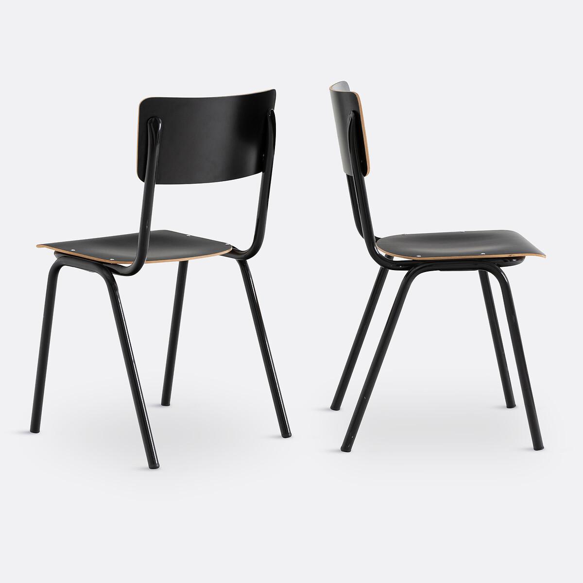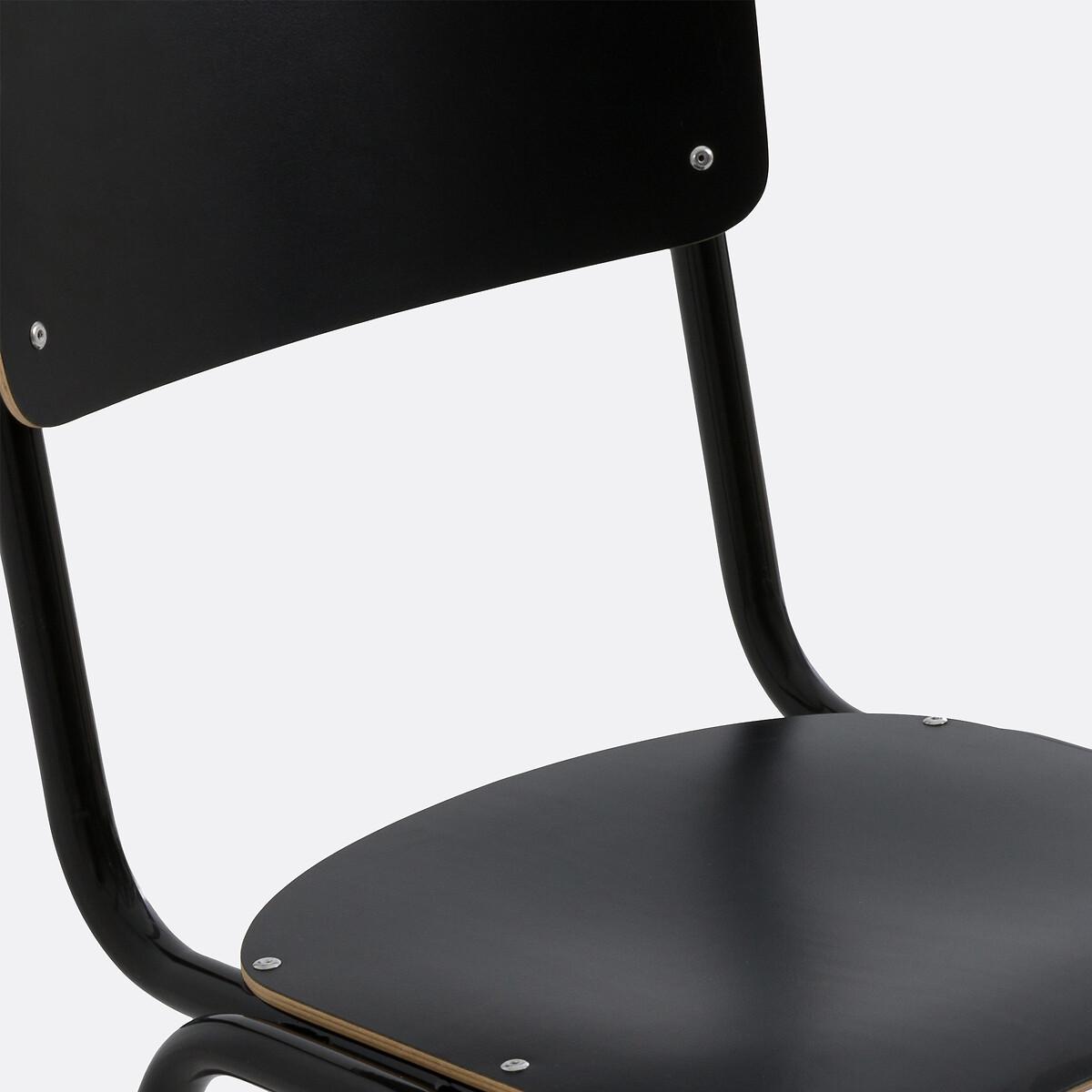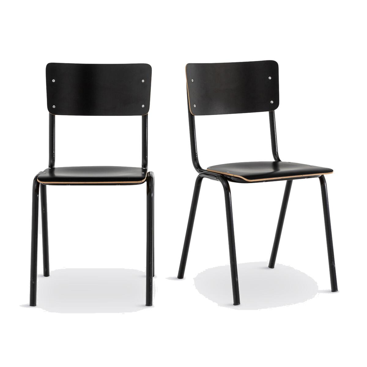 The Set of 2 Hiba Stackable School Chairs. Stackable and strong, Hiba chairs leave the classroom to integrate the dining room or the office. Product Details • In beech plywood covered with coloured laminate, natural coloured edges • Tubular steel frame with a matt black epoxy finish • Stackable • It is advisable to tighten the screws, if necessary, for optimal quality and stabilityDimensions. Total: • Width: 45cm • Height: 81cm • Depth: 48cm. Seat: • Height: 46cmDelivery:. Assembly required. Available for home delivery. • Made in Europe. Parcel dimensions and weight1 parcel • L97 x H47 x D52cm • 12.7kg
