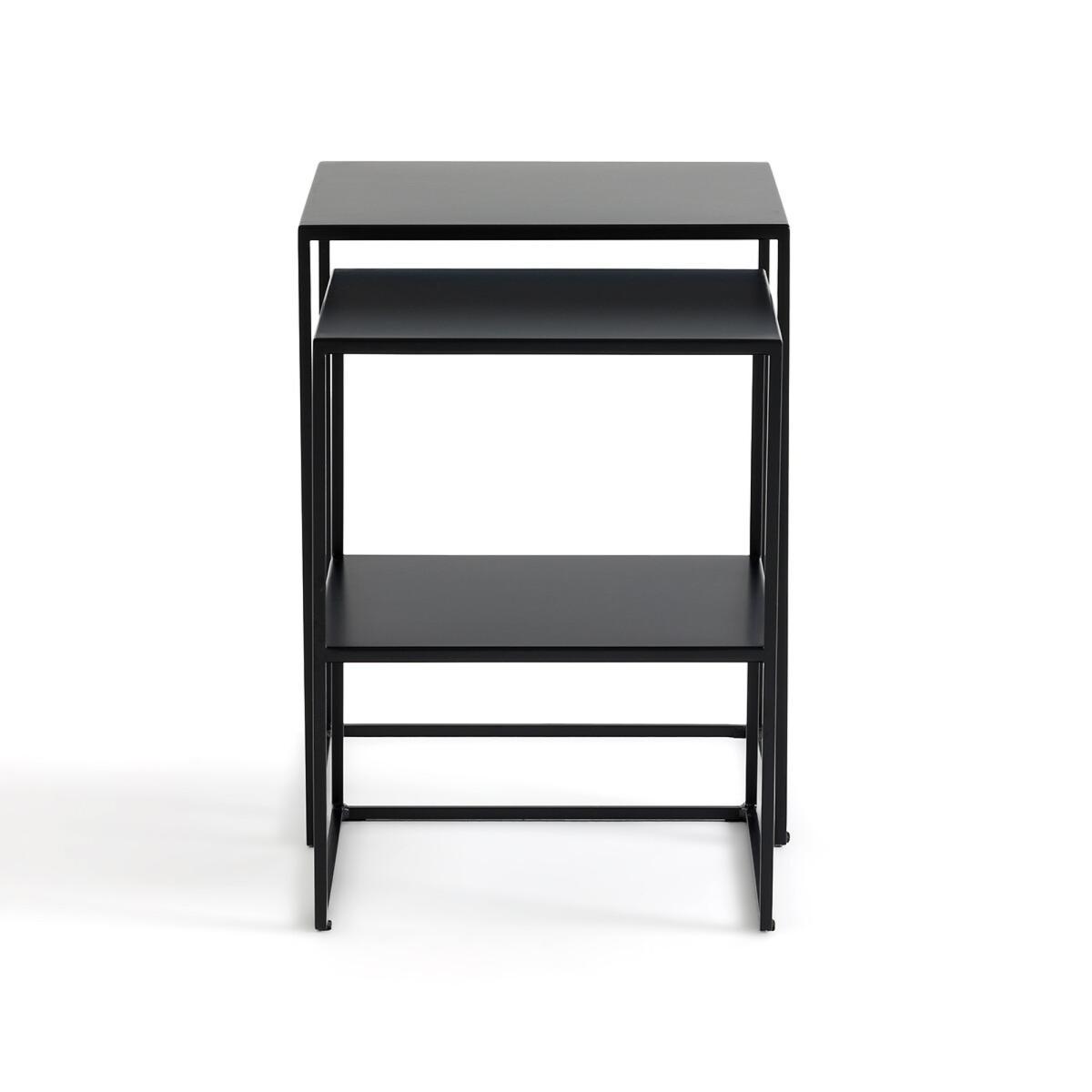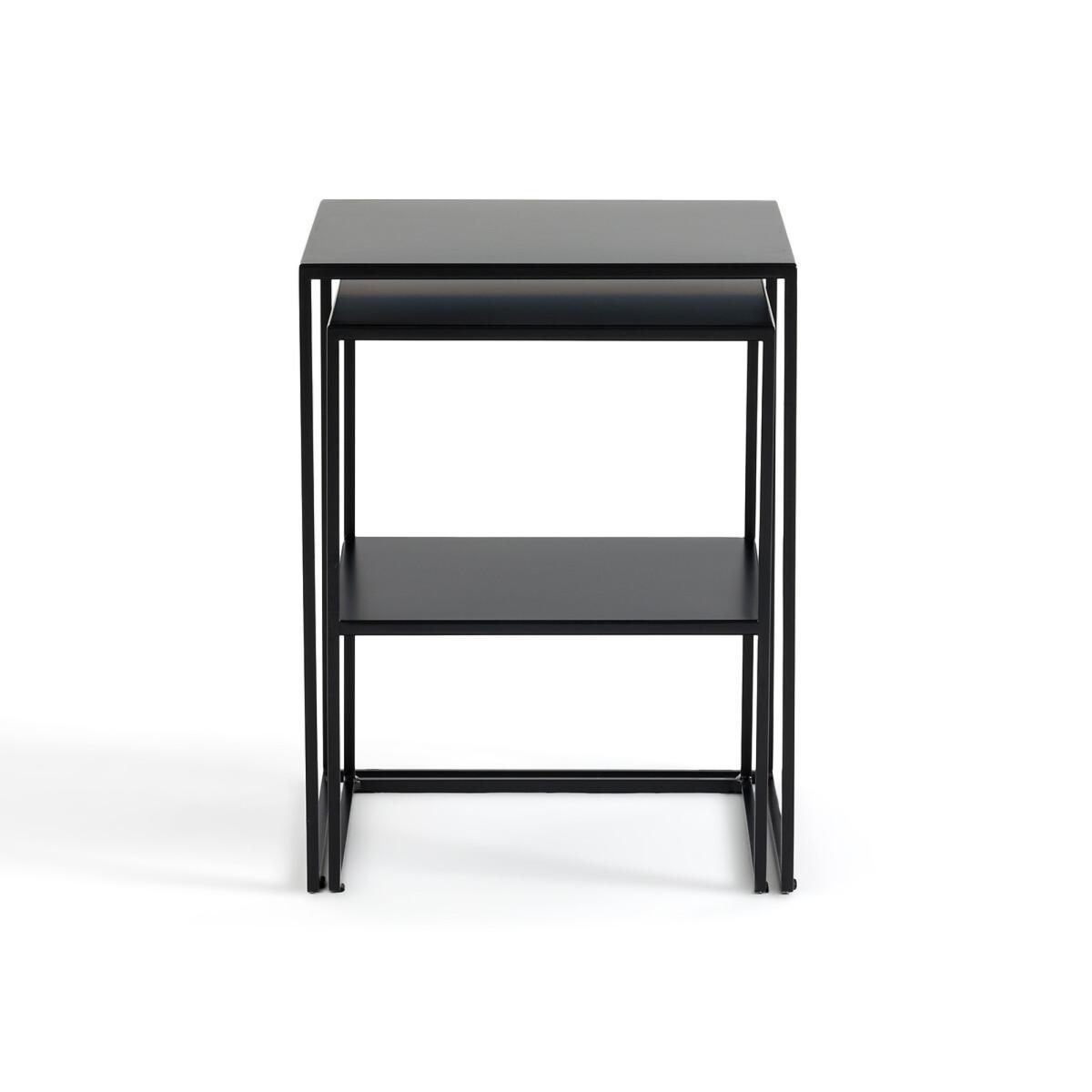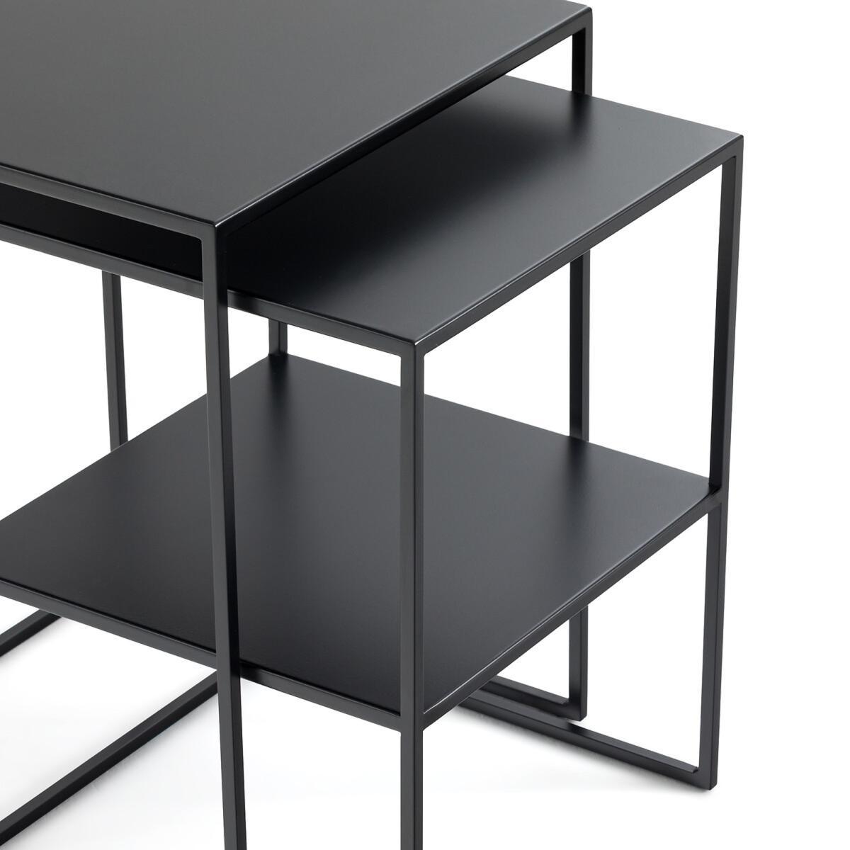 I love this set of two Hiba steel tables for their sleek, minimalist design and versatility. They work brilliantly in modern, industrial, or contemporary interiors, offering a practical yet stylish solution for extra surface space. The nested design makes them easy to tuck away when not in use, perfect for small living rooms or cosy corners. For styling tips, try pairing them with monochrome or neutral-toned accessories for a clean look, or add a pop of colour with decorative objects or plants to create visual interest. These tables are equally suited for use as side tables in a lounge, bedside tables, or even as display surfaces in an entryway, making them a flexible choice for various spaces.