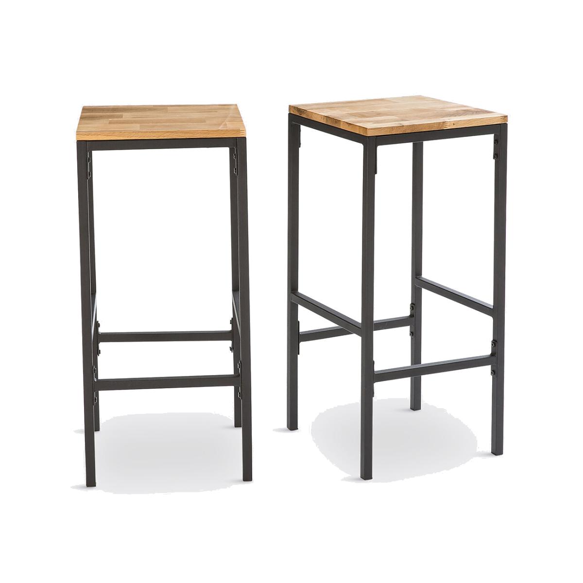 Set of 2 Hiba Wood & Metal High Bar Stools