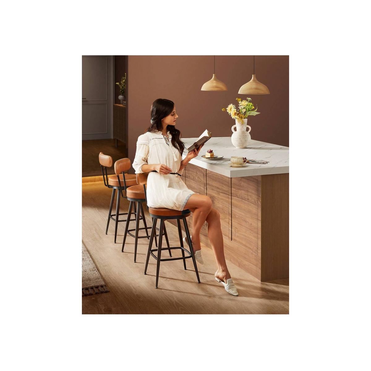 These bar stools blend richly textured synthetic leather with refined stitching, creating a stylish addition to your home. Featuring an 8 cm thick, 58. D moulded foam seat, they offer personalised comfort that adapts to your body, even during long-term use. The splayed metal legs provide steadfast stability on uneven surfaces, while swivel levelling feet ensure scratch-free contact with your floors. With a 360 swivel seat, you can easily engage with everyone around you, making social events enjoyable. The water-resistant synthetic leather cover allows for effortless cleaning, and the matte steel legs maintain their elegant appeal despite constant use.