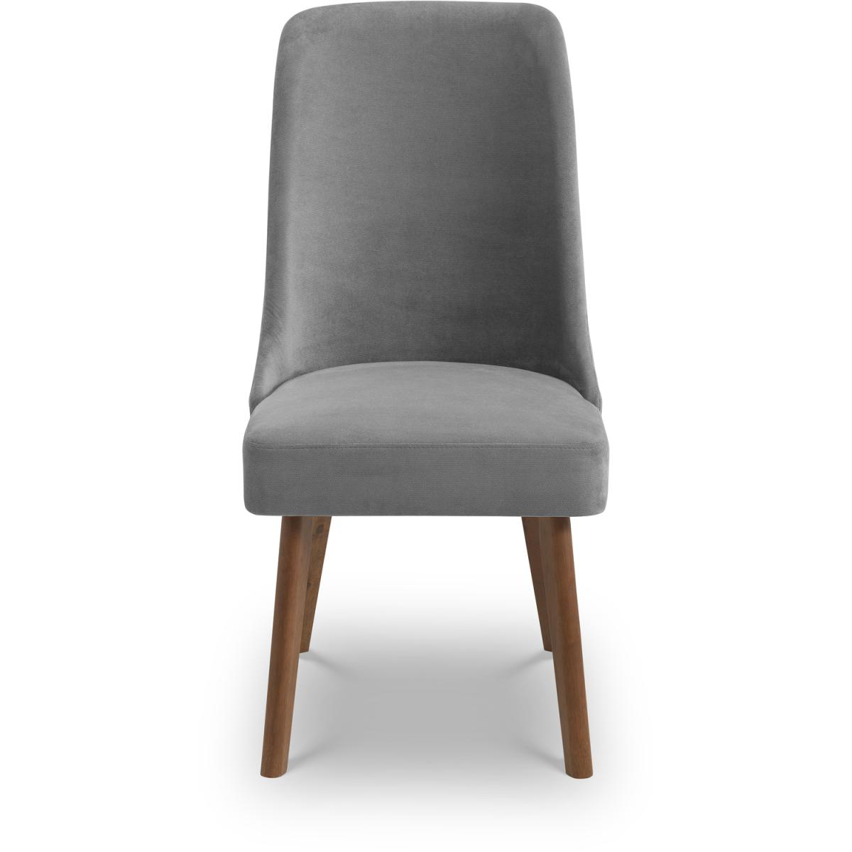 The Huxley Dining Chair features a glamourous curved back, with modern tapered walnut legs. Finished in dusk grey chenille fabric, this dining chair adds a touch of elegance to any dining area, the perfect match for the Huxley Round Table.