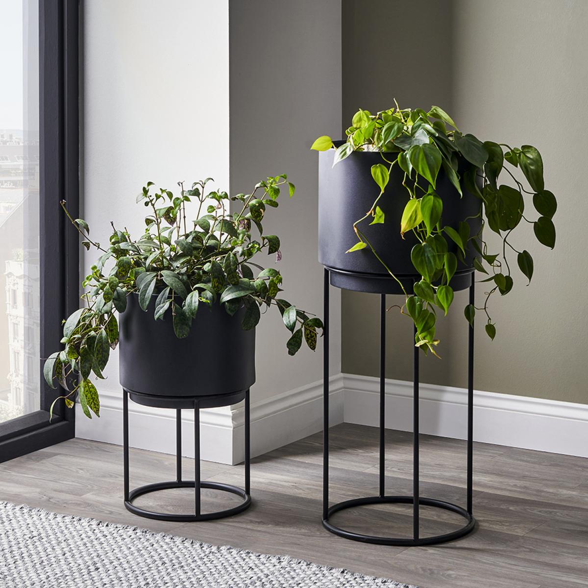 Enhance the aesthetic of your indoor space with this set of 2 sleek Black Graphite Indoor Planters. Made from durable graphite metal, these planters are perfect for showcasing your favourite plants or flowers in any room of your home. The modern design and neutral colour make them versatile enough to complement any decor style. Upgrade your plant game with these stylish planters today.