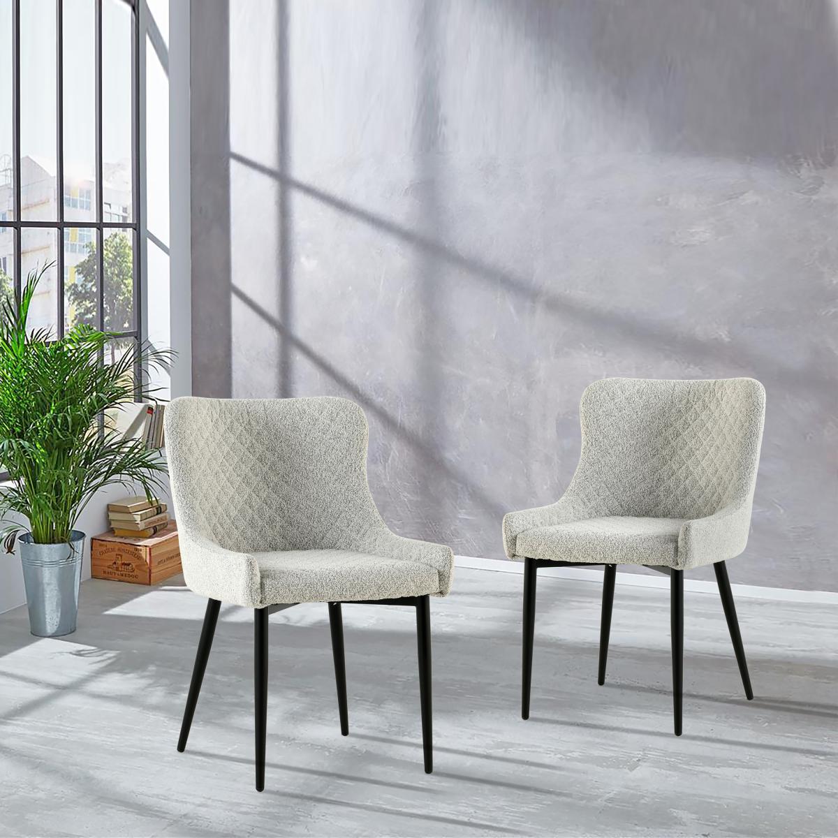 Set of 2 Indus Valley Simba Stitched Back Boucle Dining Chairs Beige