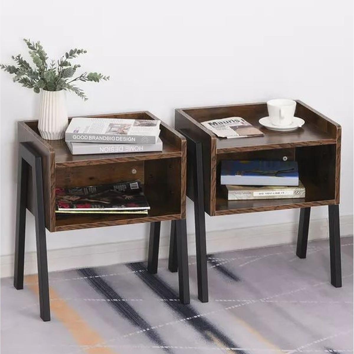 Set of 2 Industrial Bedside Tables With Open Shelf - Brown and Black