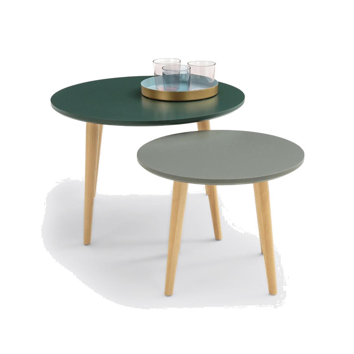 Set of 2 Jimi semi-nesting coffee tables. A sleek and on-trend minimalist design. You'll simply adore these Jimi coffee tables : Positioned separately or grouped together, they lend themselves to all combinations in a superb range of colours. Product Details • Round shape. • Semi-nesting. • Top in satin lacquered MDF with polyurethane varnish finish. • 50's style tapered legs in solid birch with glossy nitrocellulose finish. Care Advice • To preserve the lacquered appearance of its top and prevent scratches, protect the coffee table from shocks and impact. We also strongly recommend the use of coasters and/or table mats. Dimensions Model 1 • Diameter: 60cm • Height: 40cm Model 2 • Diameter: 45cm • Height: 35cm. Delivery: • Assembly required. Available for home delivery. Note! Please check that all access points are large enough to accommodate your delivery (doors, stairs, lifts). • WOOD FROM SUSTAINABLY MANAGED FORESTS. FSC® certified wood comes from forests that are environmentally, socially and economically well managed. Parcel Dimensions:1 parcel • L70 x H12 x D70cm • 11.6kg