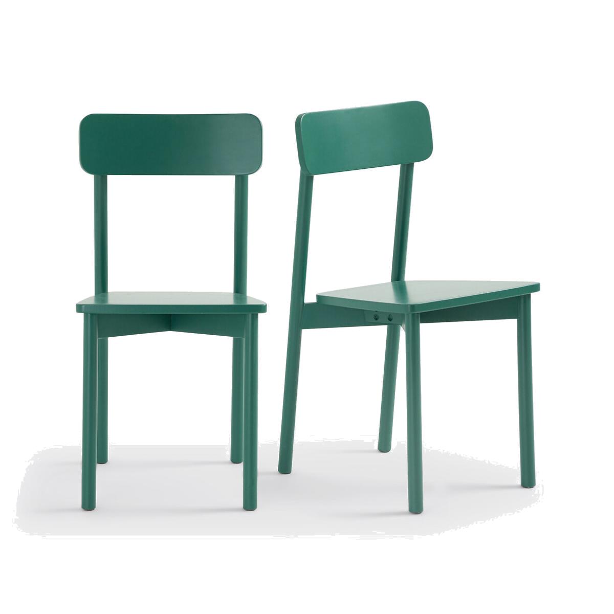 Chair in solid beech painted in bright colours, with clean and graphic shapes: Jodi gives rhythm to the space and brings vitality throughout the house. Produced in Europe, it is a resolutely contemporary chair. Product Details • Structure in solid beech, polyurethane varnish finish mixed with colour pigments • FSC® certified wood • Sold in packs of 2. Dimensions • Width: 42cm • Height: 83cm • Depth: 44.5cm • Seat: L42 x H46.5 x D38.5cm • Weight: 5.5kgDelivery:. Sold pre-assembled. Available for home delivery. • Made in Europe. • WOOD FROM SUSTAINABLY MANAGED FORESTS. FSC® certified wood comes from forests that are environmentally, socially and economically well managed. Dimensions and weight of parcel1 parcel • L56.5 x H43 x D89cm. 12.2kg